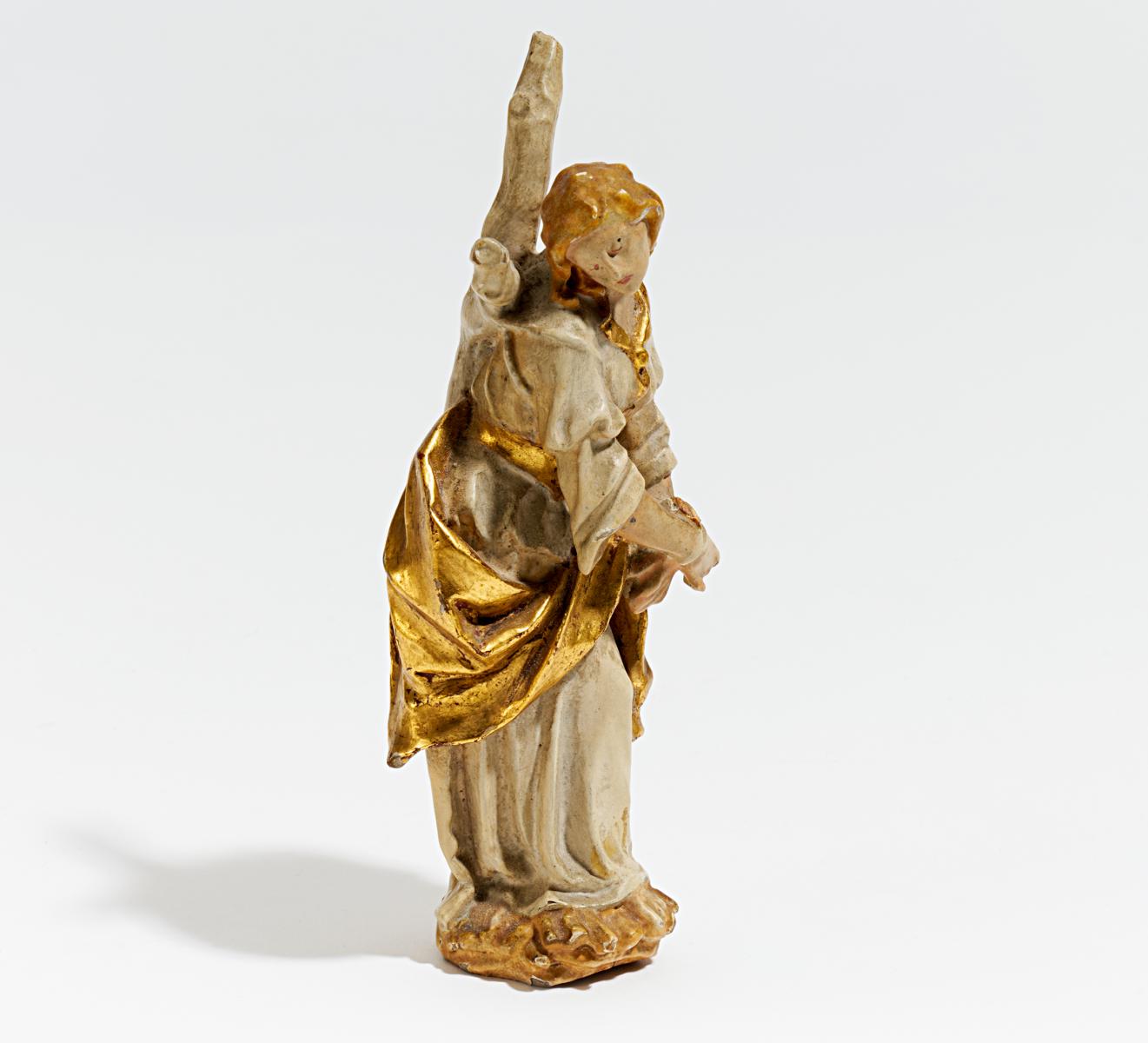 Technik: Holz, geschnitzt, farbig und gold gefasst.