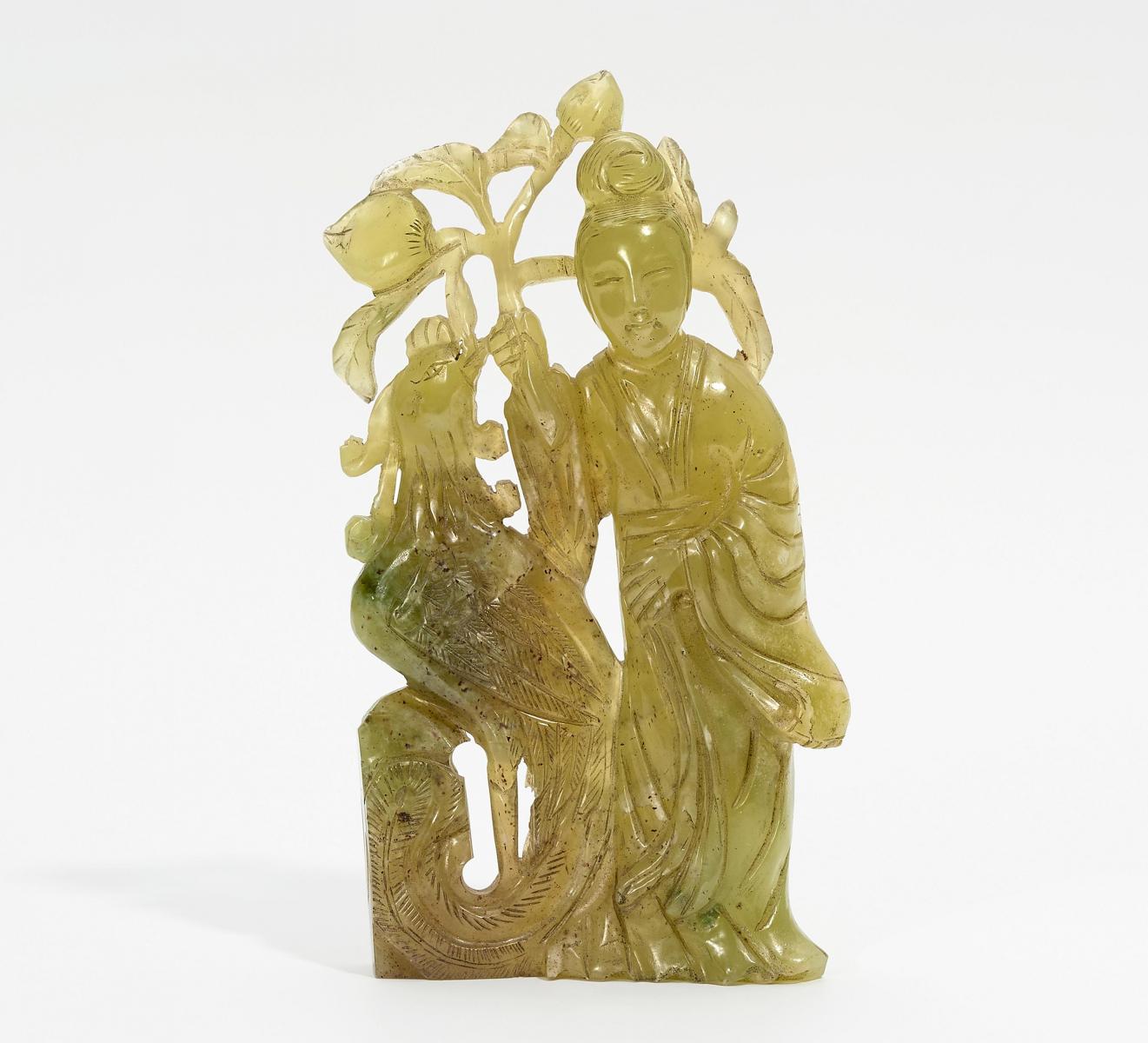 DAME MIT PFIRSICHZWEIG UND PHÖNIX.