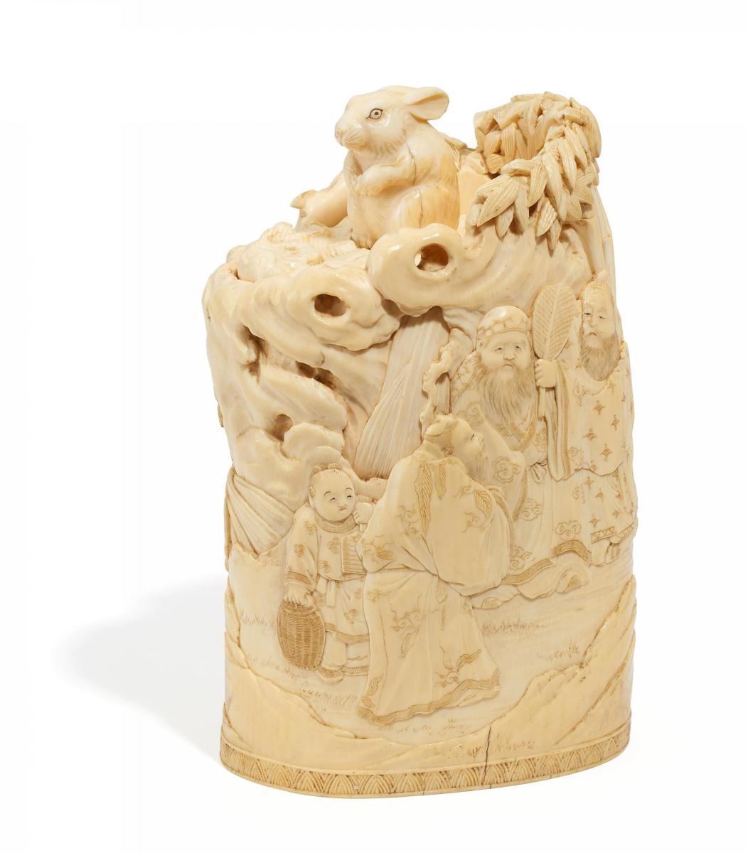 wird bekrönt von einem sitzenden Hasen. Bez. mit kleinem, rotem Siegel, nicht