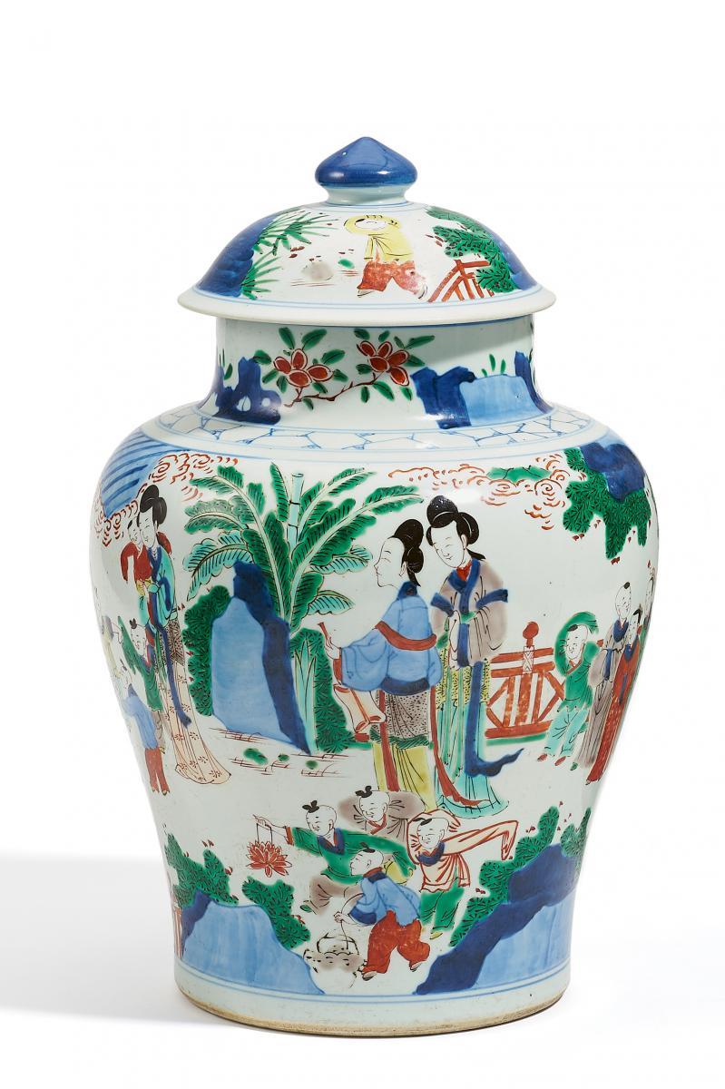 DECKELGEFÄß MIT SPIELENDEN KNABEN.