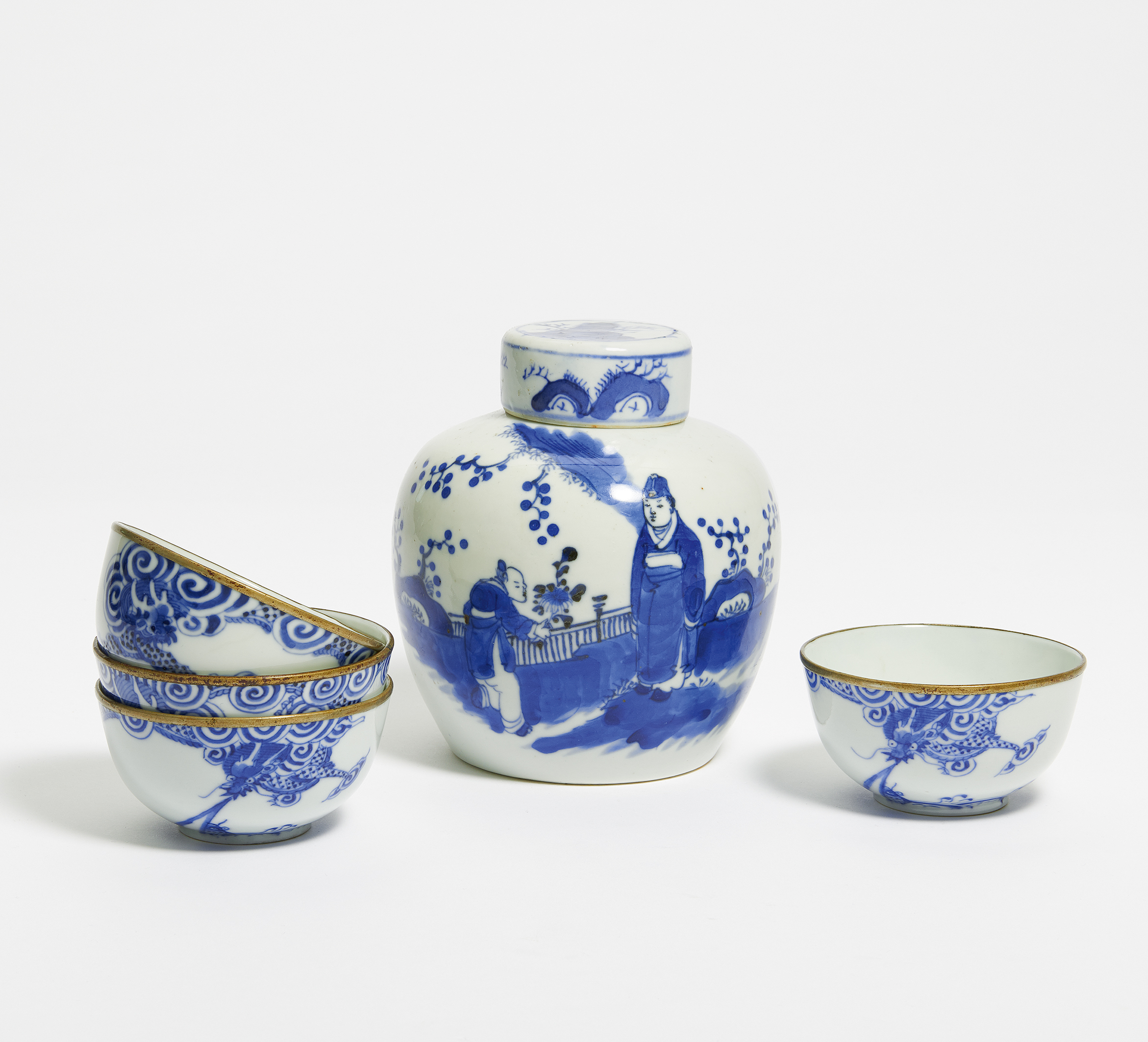 DECKELGEFÄß UND VIER KOPPCHEN.