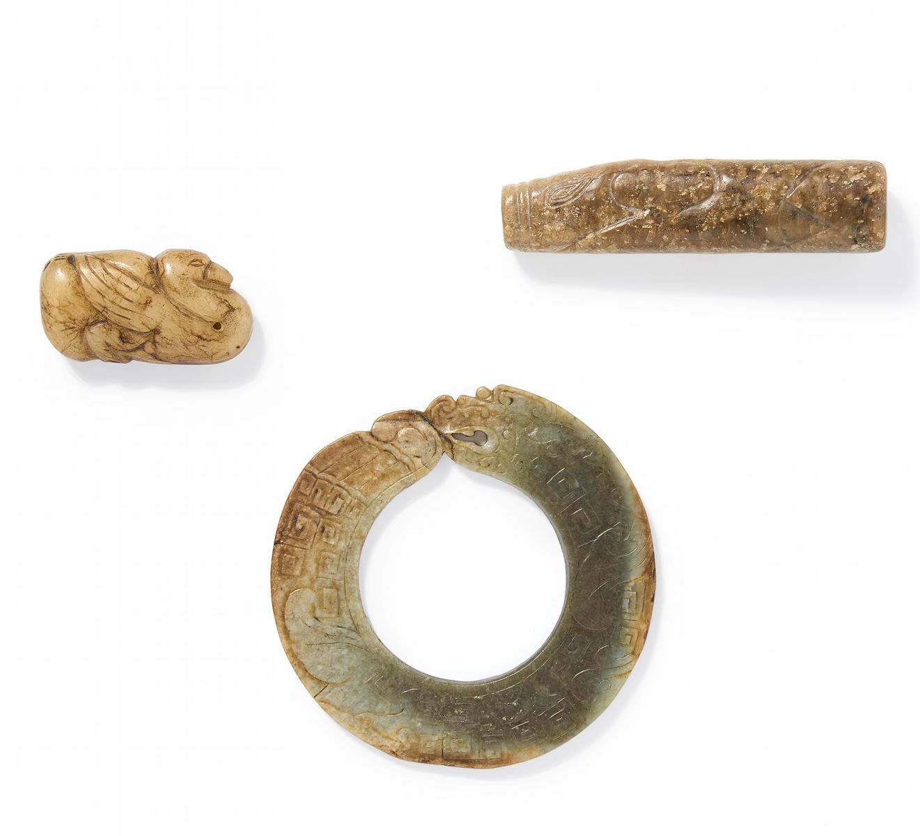 Technik: Bräunliche und grüne Jade bzw. Speckstein.