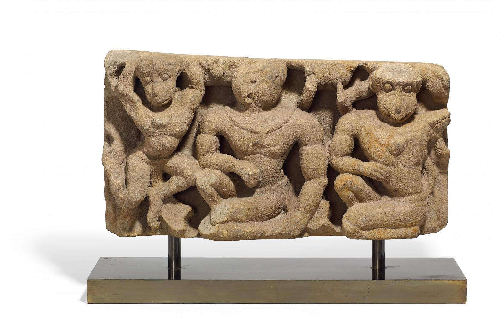 Beschreibung: Die Affen tragen gefältelte sampot um die Hüften und Schmuck um den Hals. Sie sind als