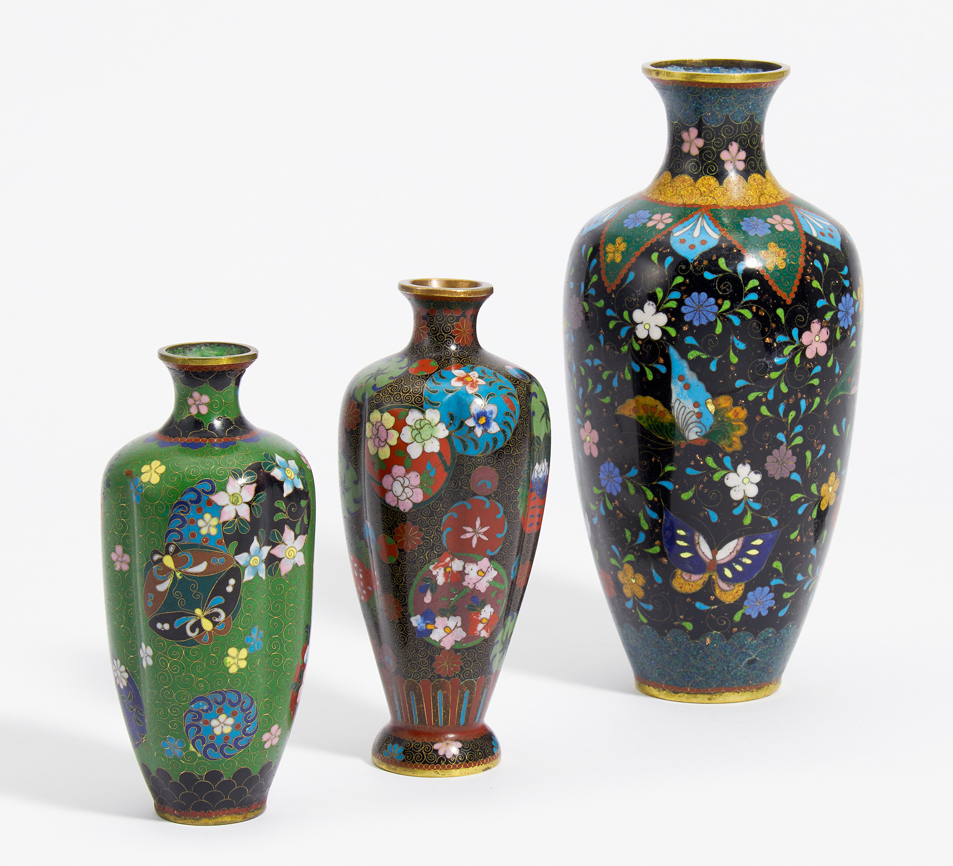 Technik: Cloisonné, teils mit Aventurin-Glas.