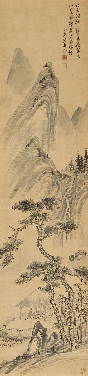 Takamoto Sekitei. Datiert 1864. 132x59cm. Gesamt 200x71cm.