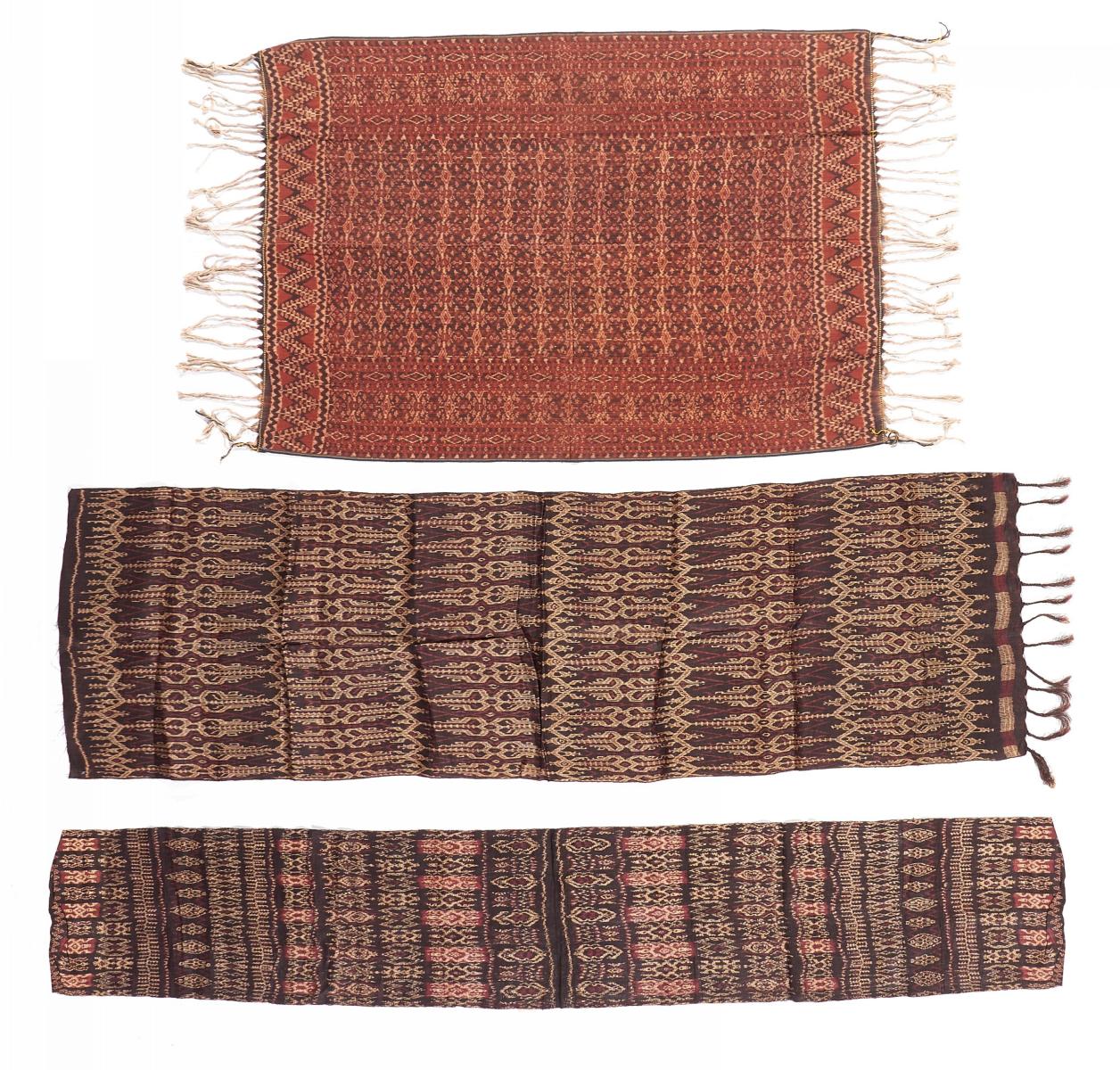 Drei Ikat-Textilien. Pflanzenfaser, Indonesien.