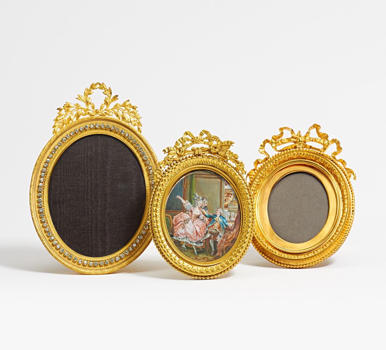 Technik: Gelbguss vergoldet. Einmal Strassbesatz.