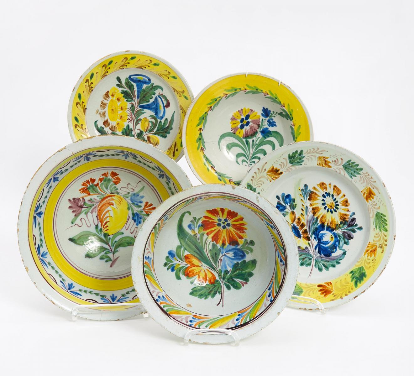 Kellinghusen. Technik: Sandfarbener Scherben mit weißer Glasur und farbigem Dekor.
