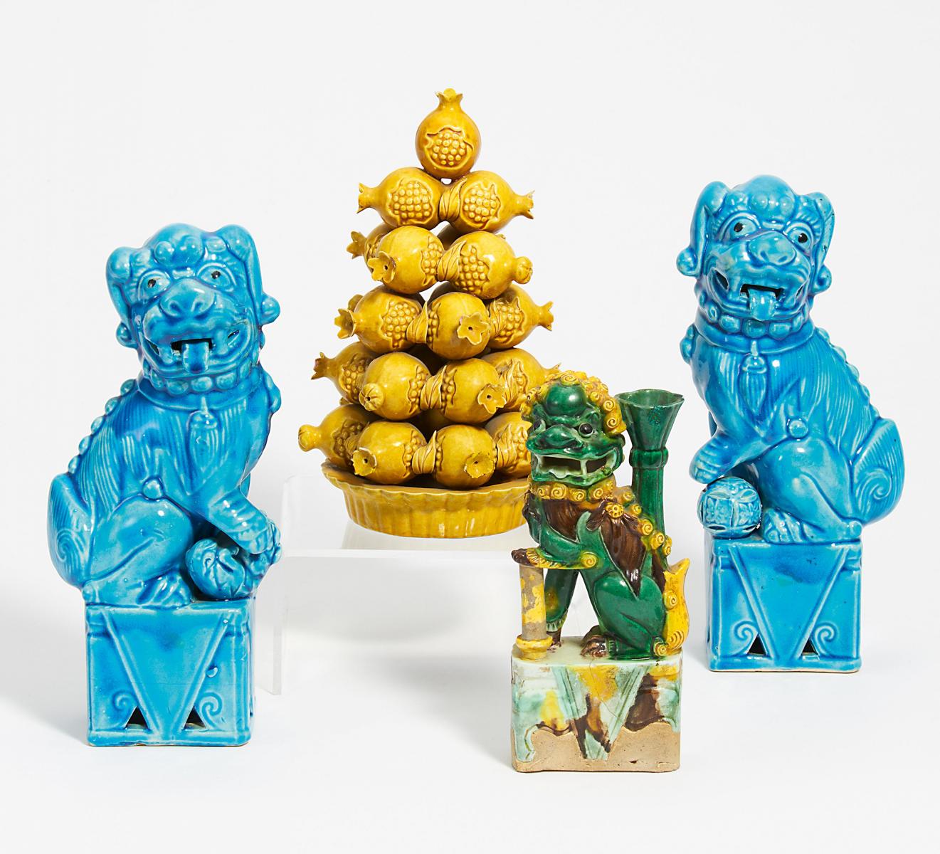 Beschreibung: a)b) Paar Löwen. H.24cm. (evtl. später) c) Löwe sancai glasiert. H.17cm. Chips, Risse,
