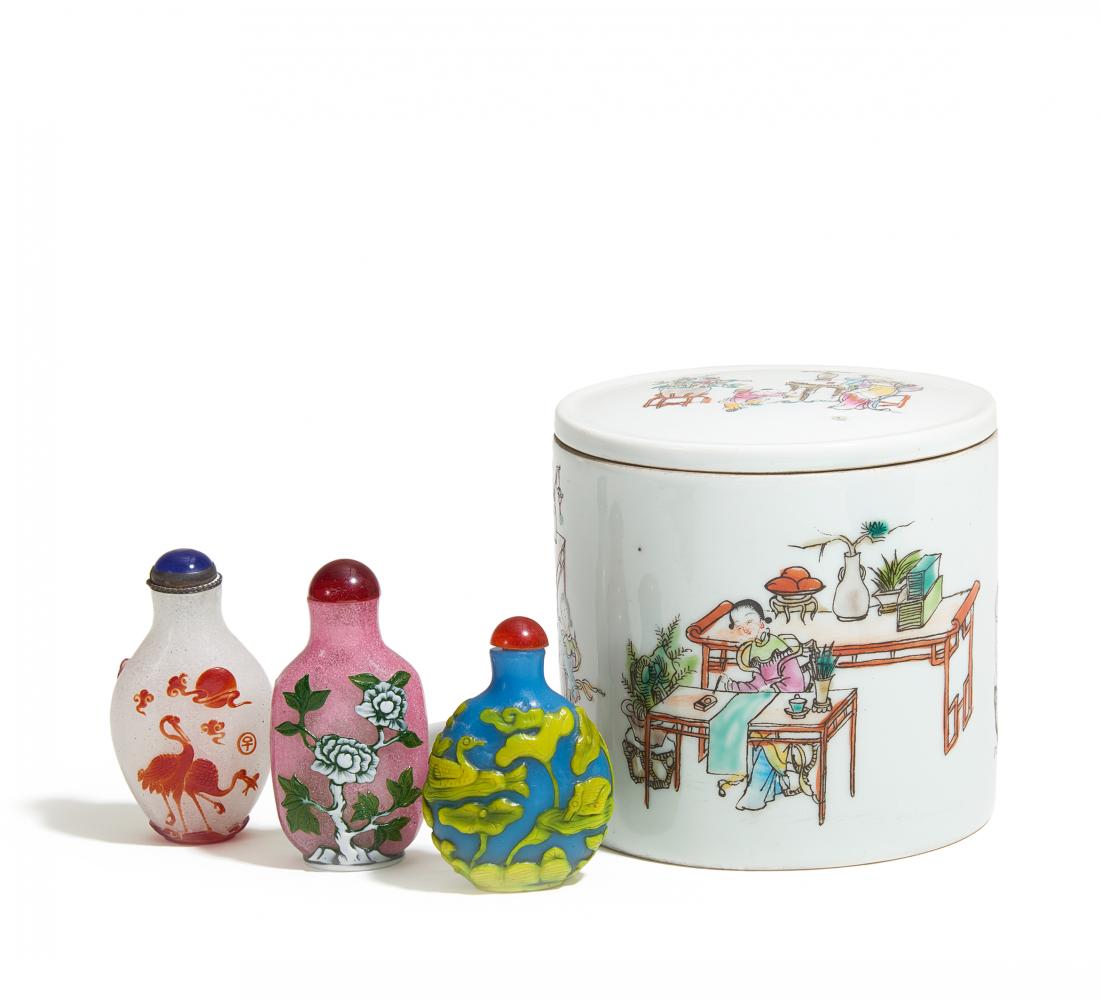 Zustand A. Beilage: Deckeldose. China. Porzellan, mit Aufglasurfarben bemalt. Höhe 11cm. Zustand A/B.