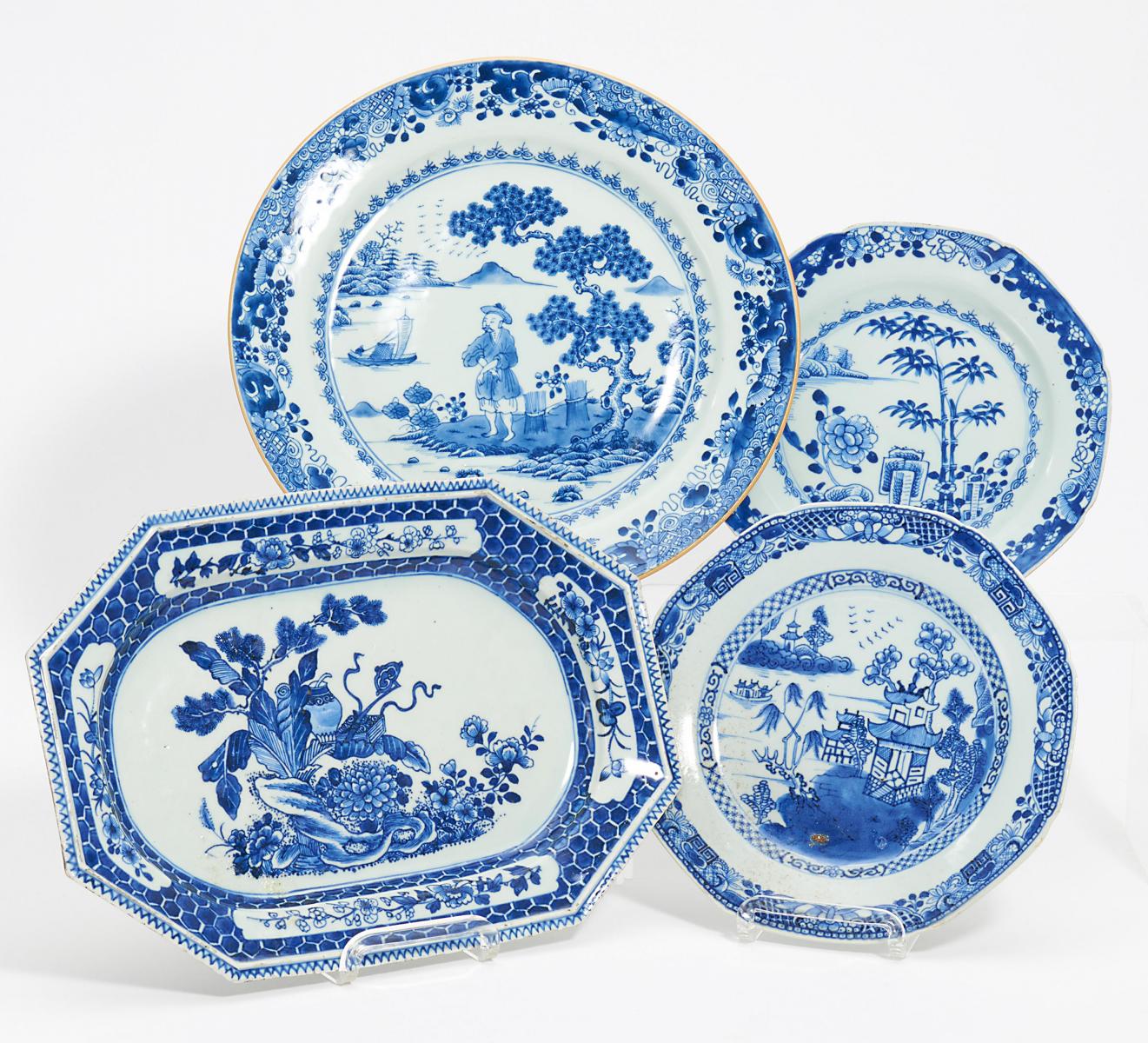 DREI TELLER UND EINE OVALE PLATTE EXPORT-PORZELLAN.