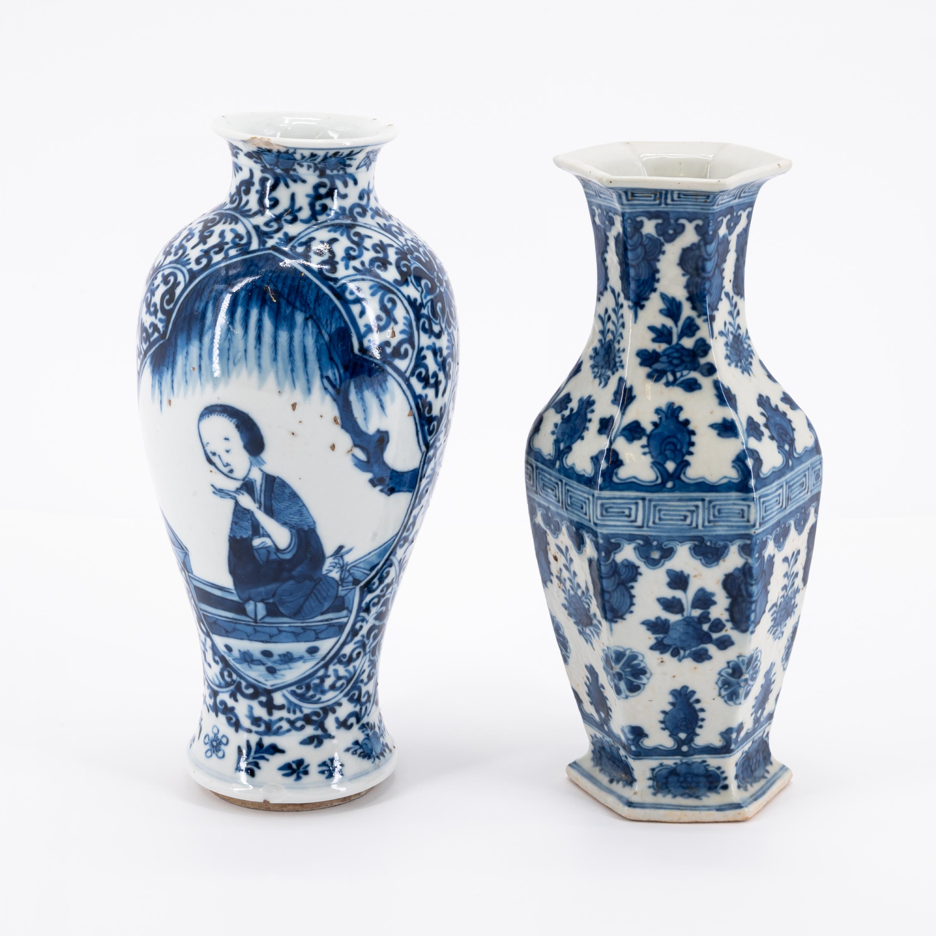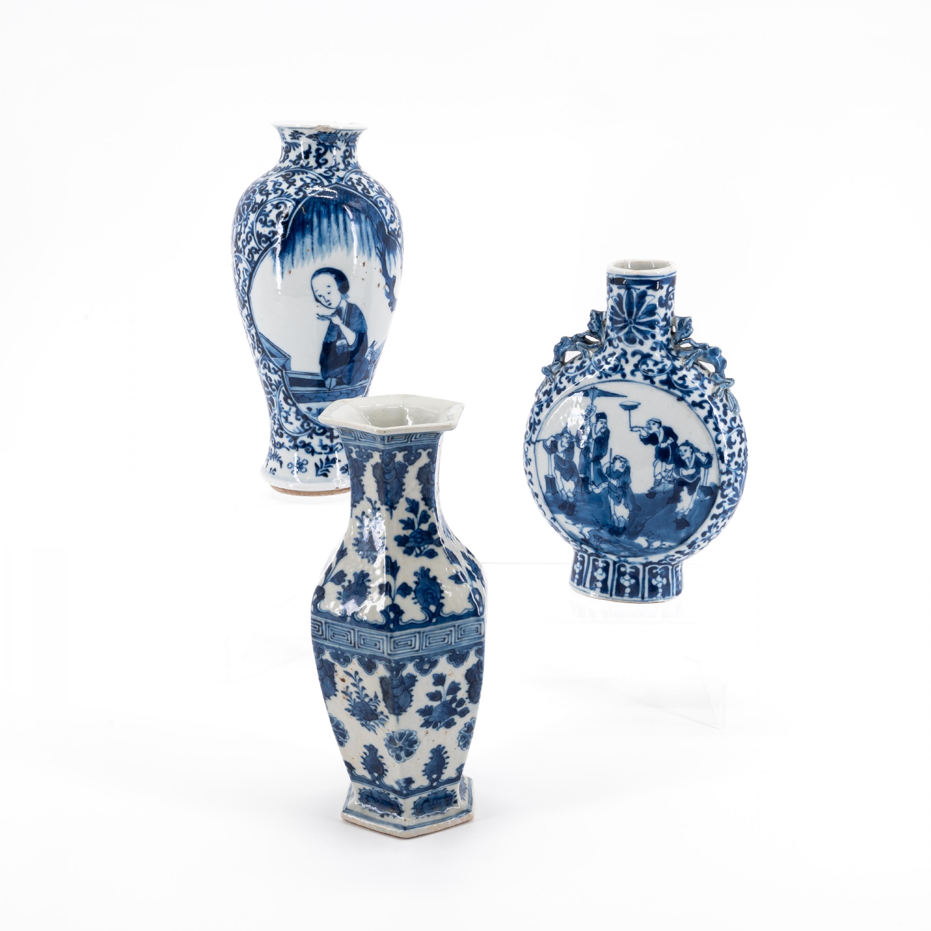 DREI VASEN MIT BLAU-WEIßEM DEKOR.