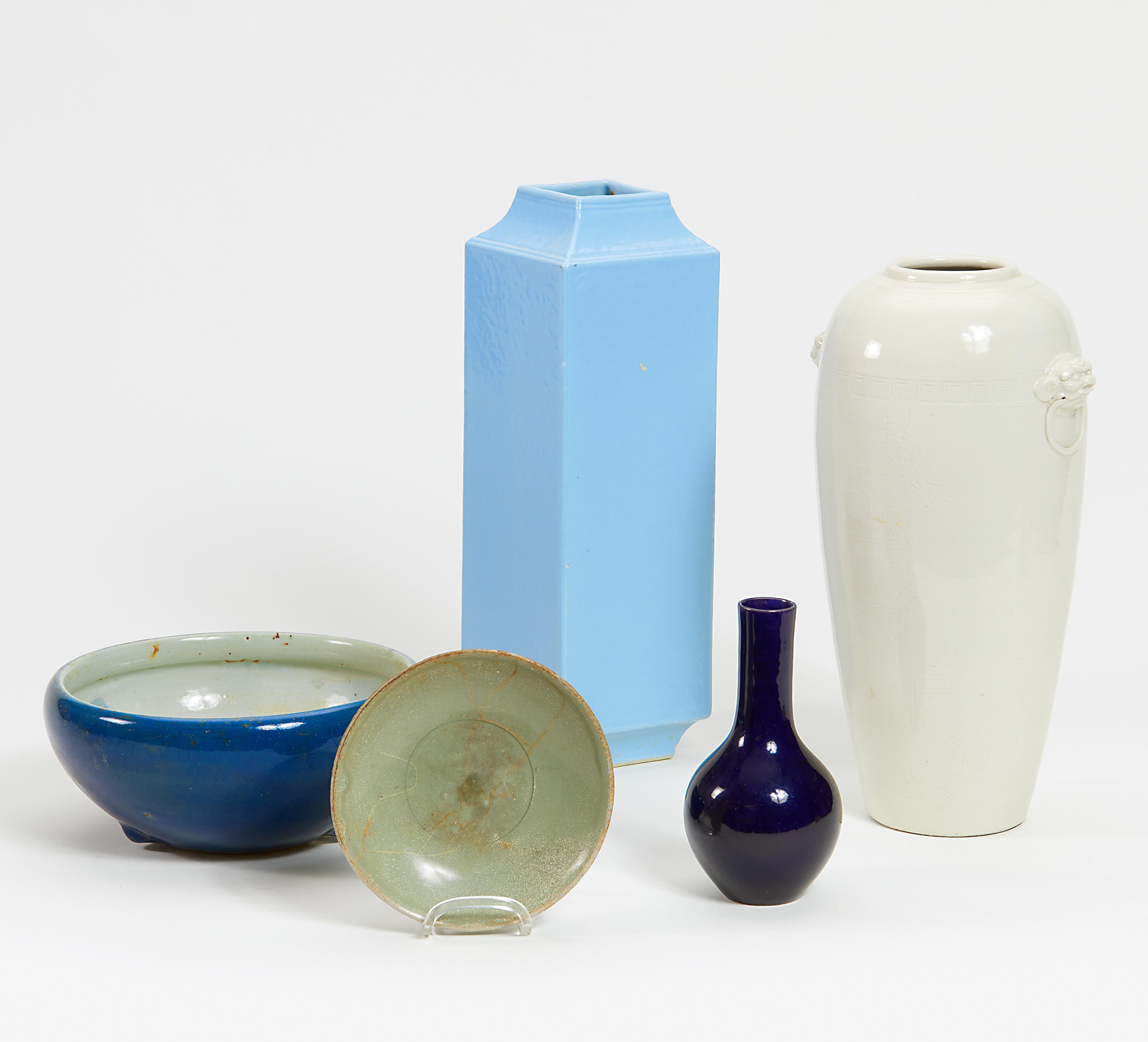 Beschreibung: a) Kleine Langhalsvase. Porzellan, monochrom nachtblau glasiert. H.16cm. 18. Jh.