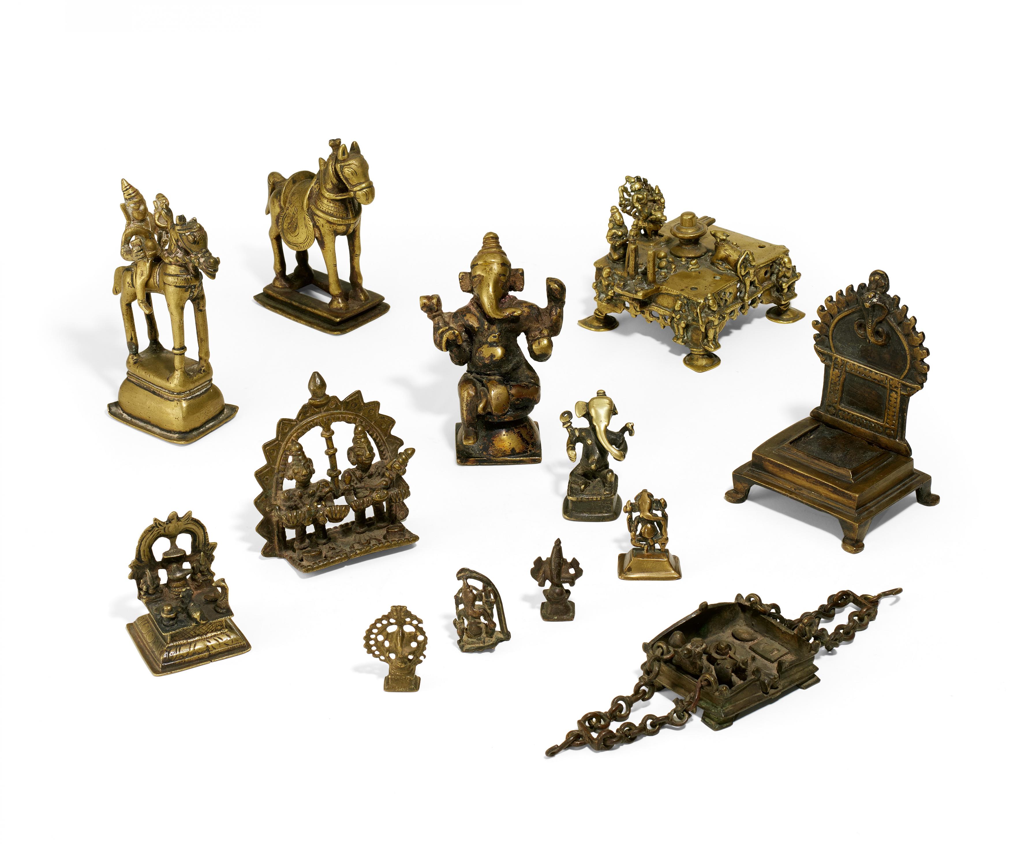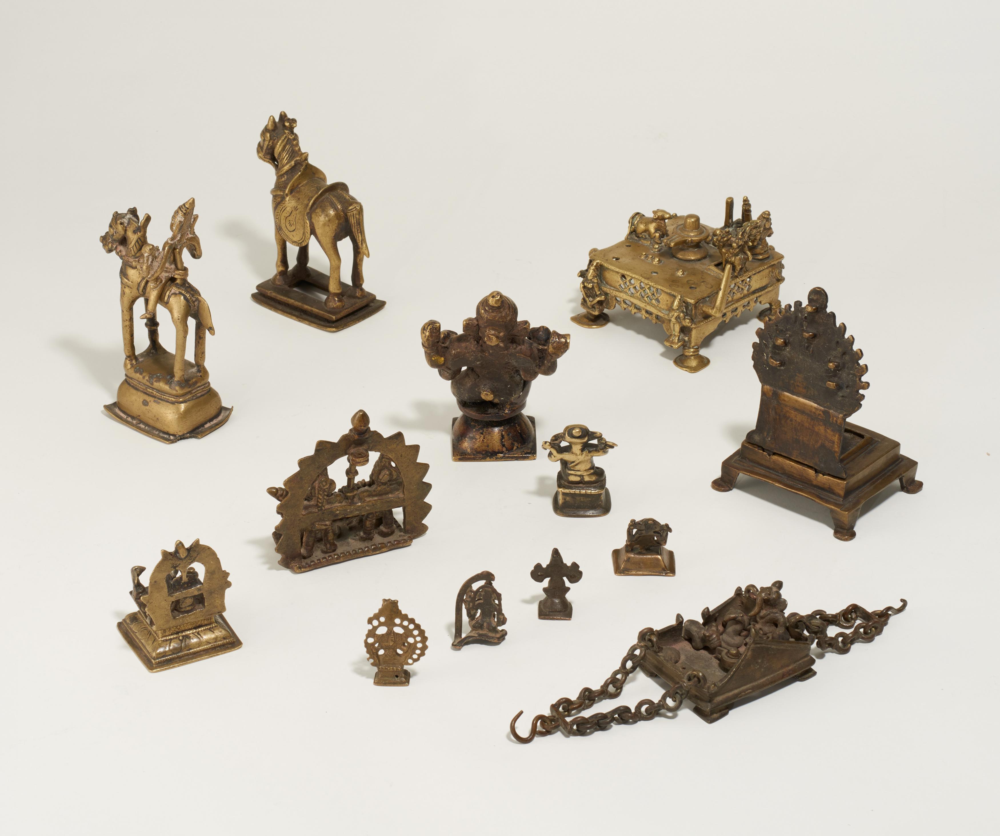 H.4,5-12,5cm. Jagannath-Trinität. H.11cm. Zwei Pferde, eines mit Shiva. H.13,5-16,5cm.