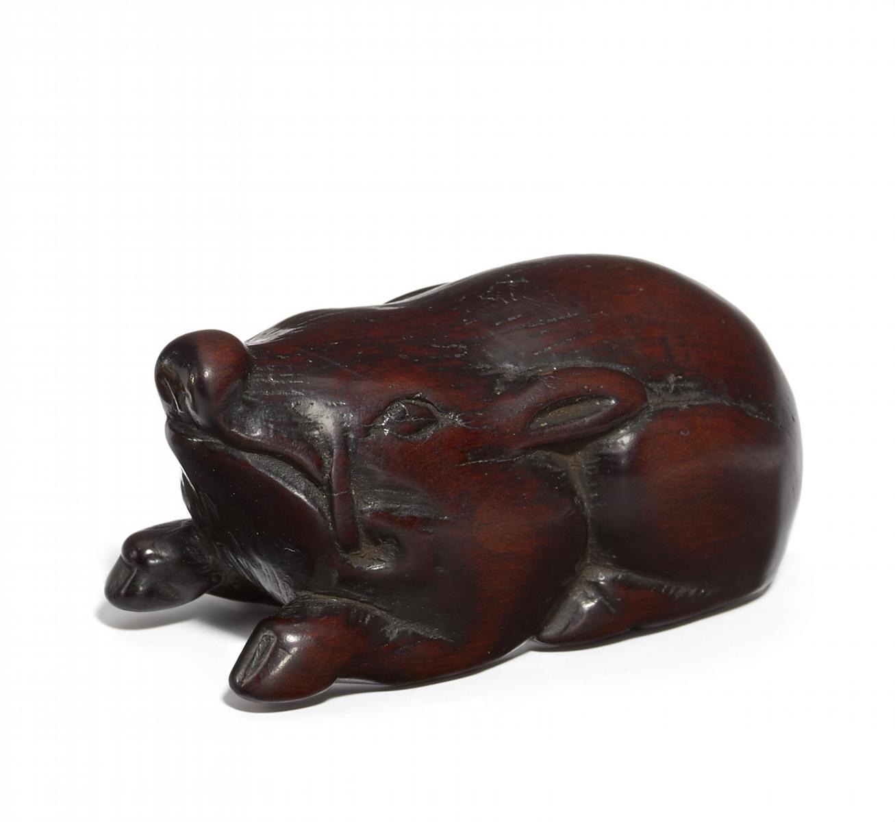 Technik: Holz, die Augen eingelegt aus dunklem Horn.