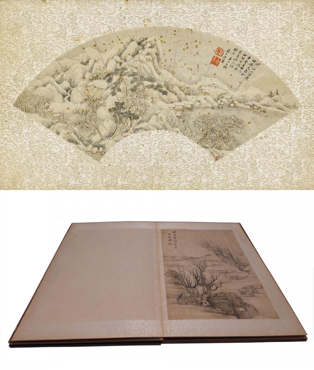 Zustand B/C. Beilage: Album mit 12 Drucken. Bez. Dai Xi (1801-1860). 42x27cm.