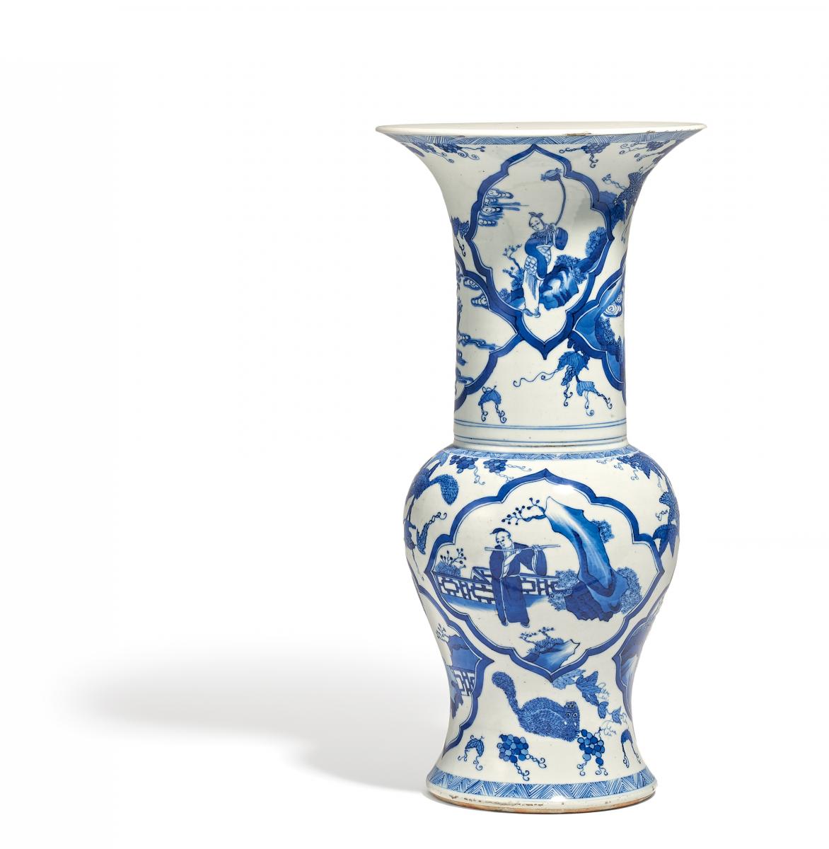 Beschreibung: Diese Vase in feng wei zun-Form (Phönixschwanz-Form) ist bemalt mit den Acht Unsterblichen