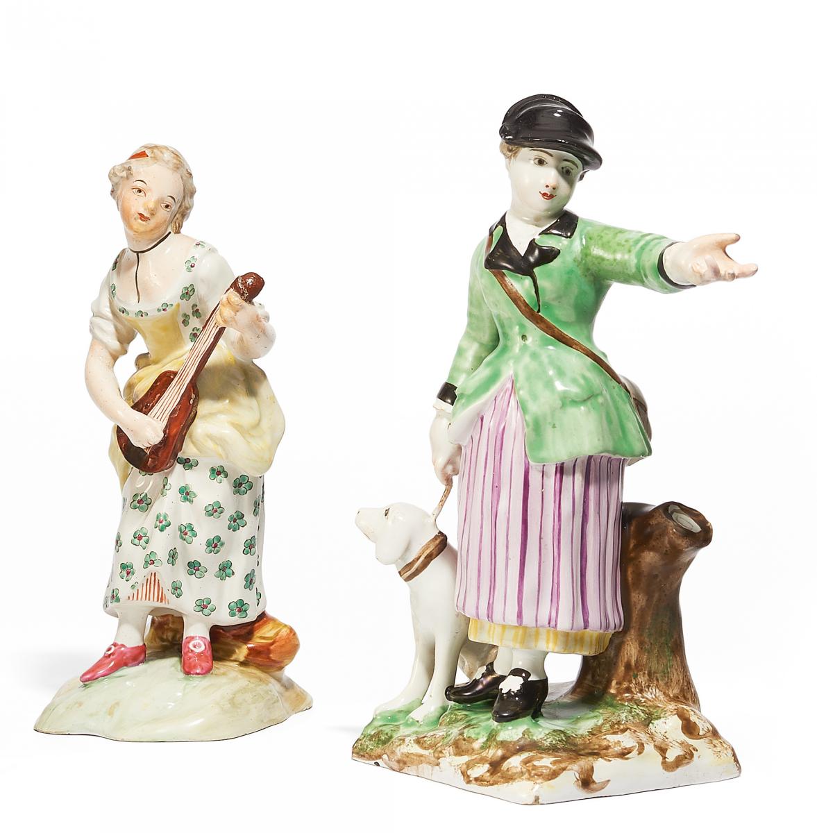 FIGUR EINER JÄGERIN UND EINER MANDOLINENSPIELERIN.