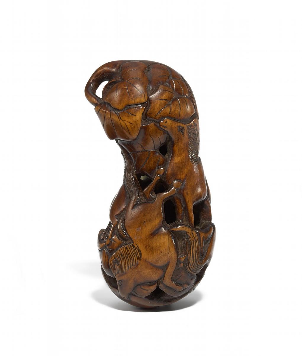 Technik: Buchsbaum, teils durchbrochen geschnitzt und fein graviert.