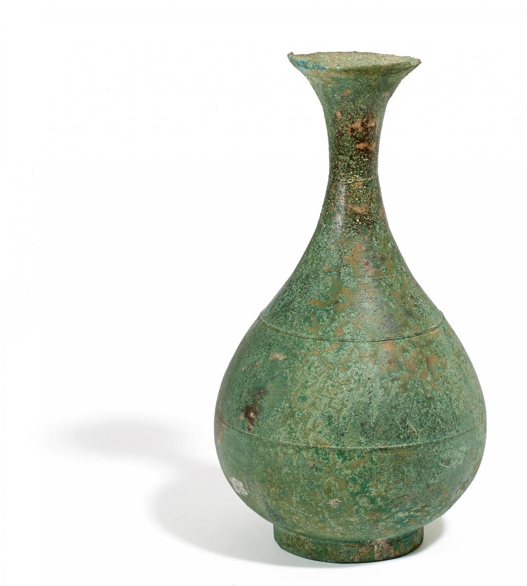 Technik: Dünnwandige Bronze mit grüner Patina.