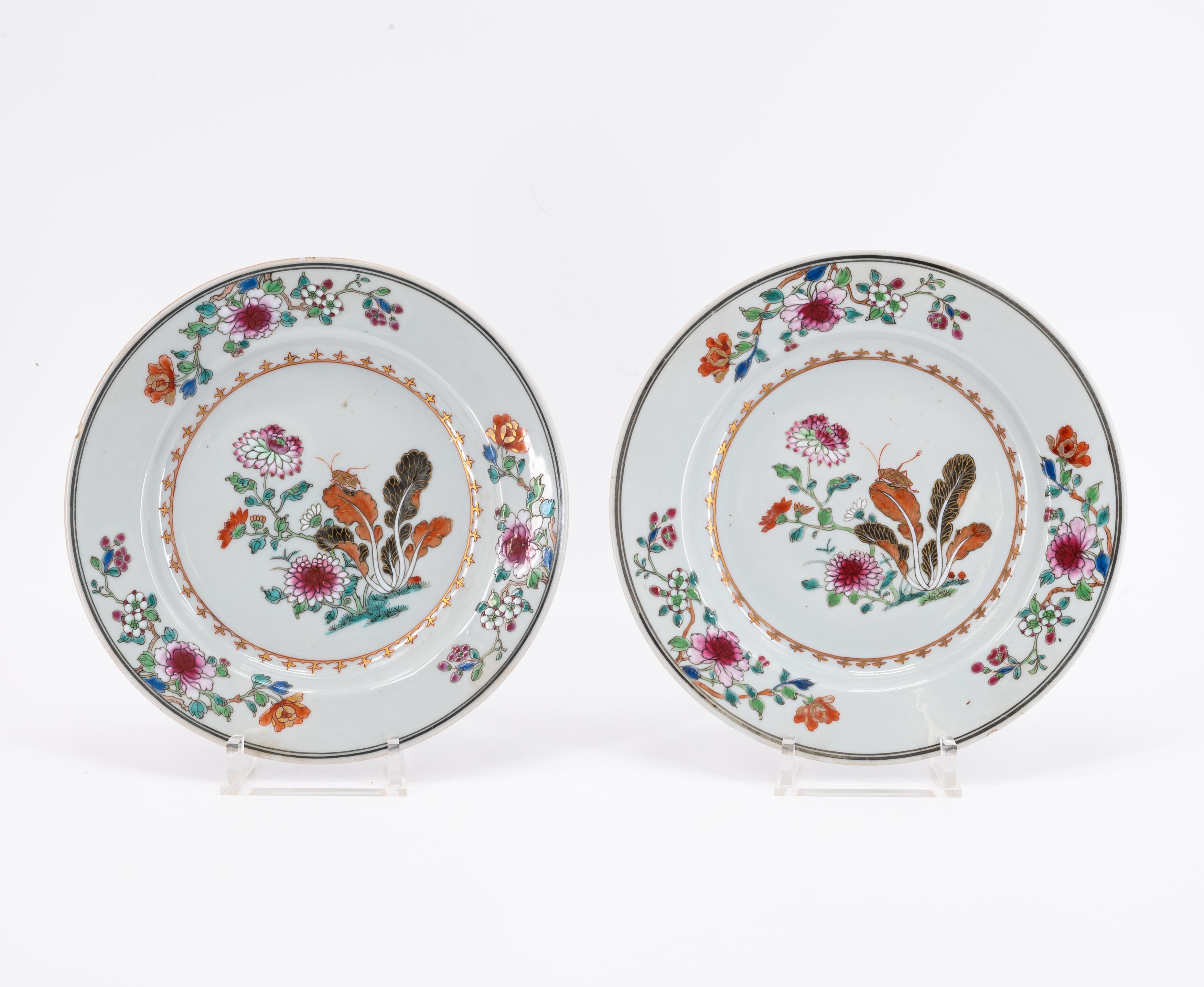FOLGE VON 4 TELLERN UND EINER SCHALE FAMILLE ROSE MIT GRILLE