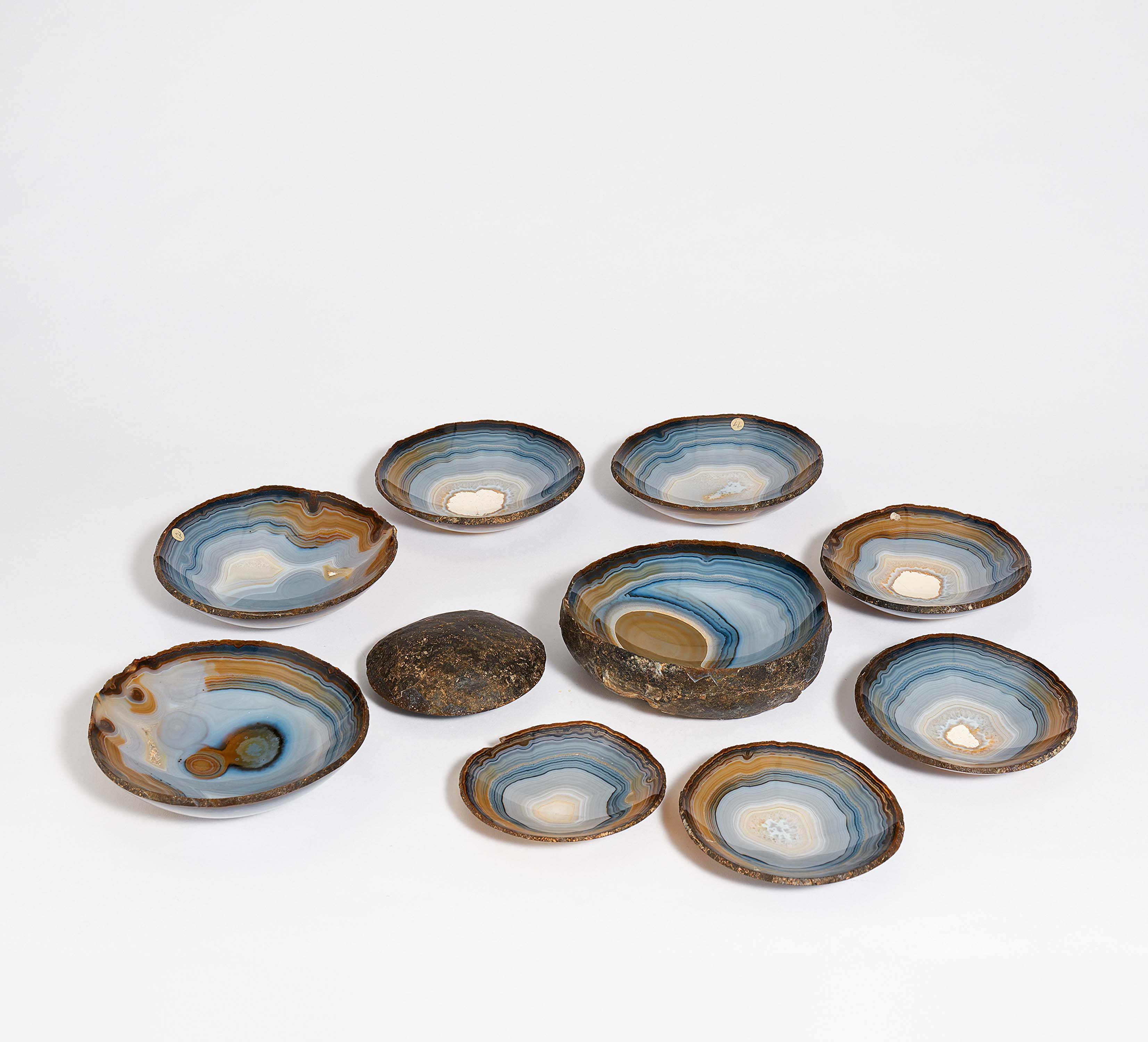 FOLGE VON 9 ACHATSCHALEN AUS EINE GEODE GESCHNITTEN.