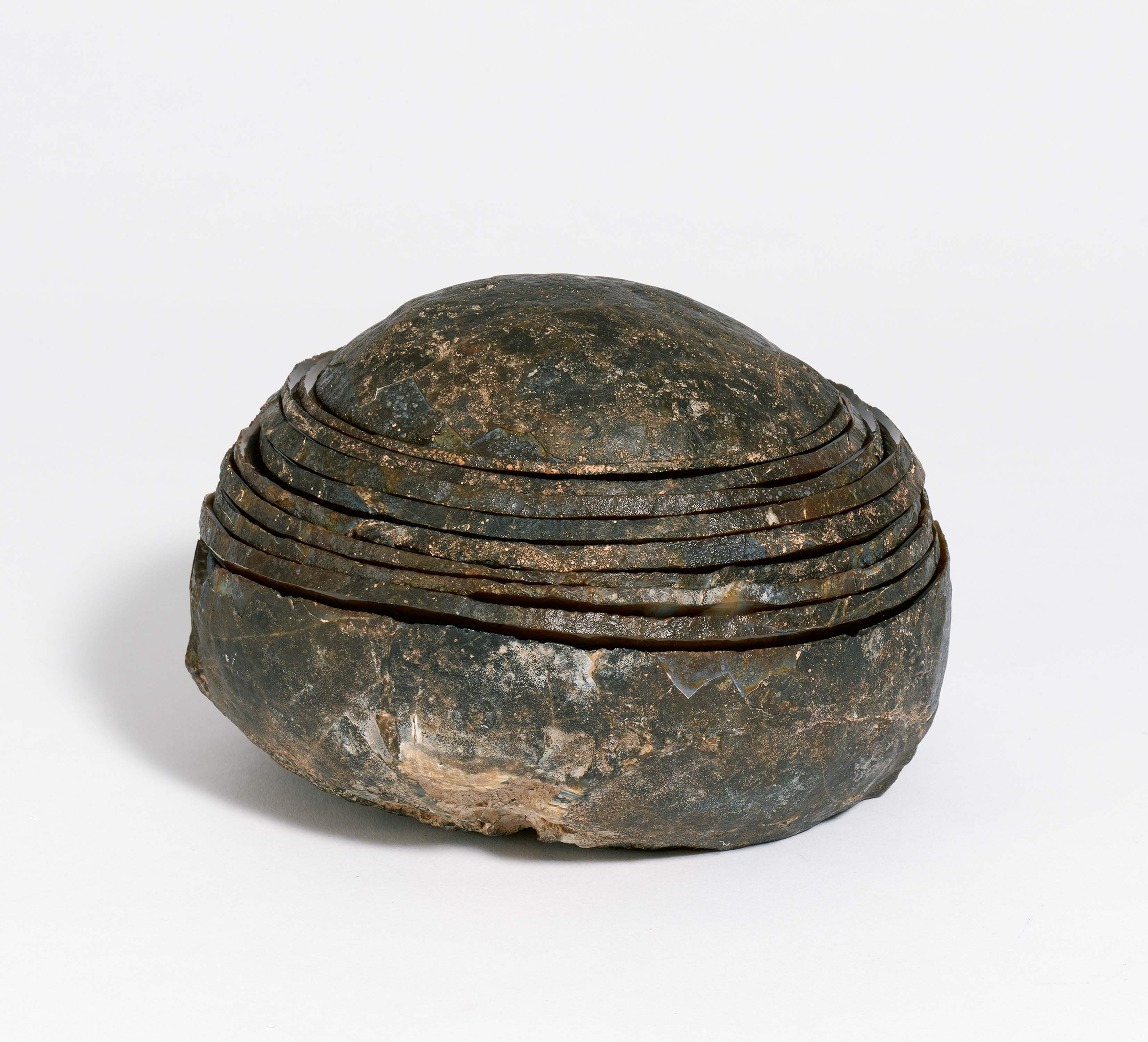 Beschreibung: 9 ineinander passende Schalen sowie ein linsenförmiger 'Schlussstein'.