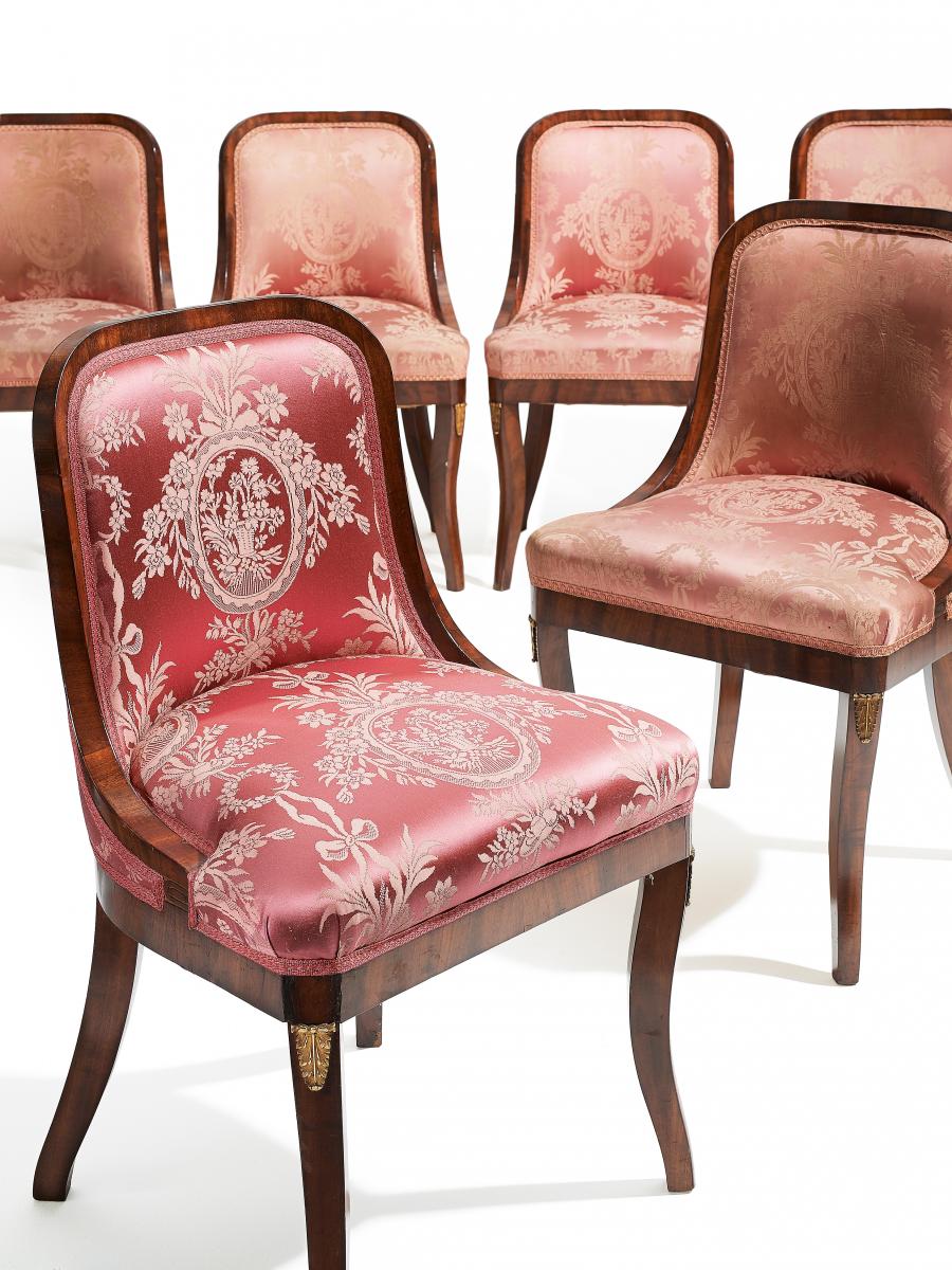 FOLGE VON SECHS HÖFISCHEN SPÄTKLASSIZISMUS STÜHLEN.