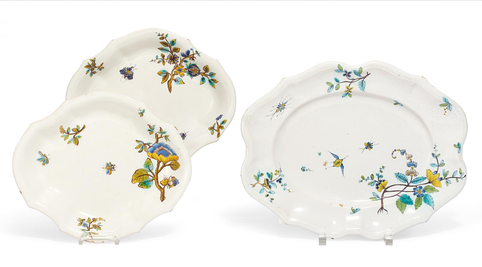 FOLGE VON ZWEI KLEINEN SCHALEN UND EINER PLATTE FLEUR DES INDES.
