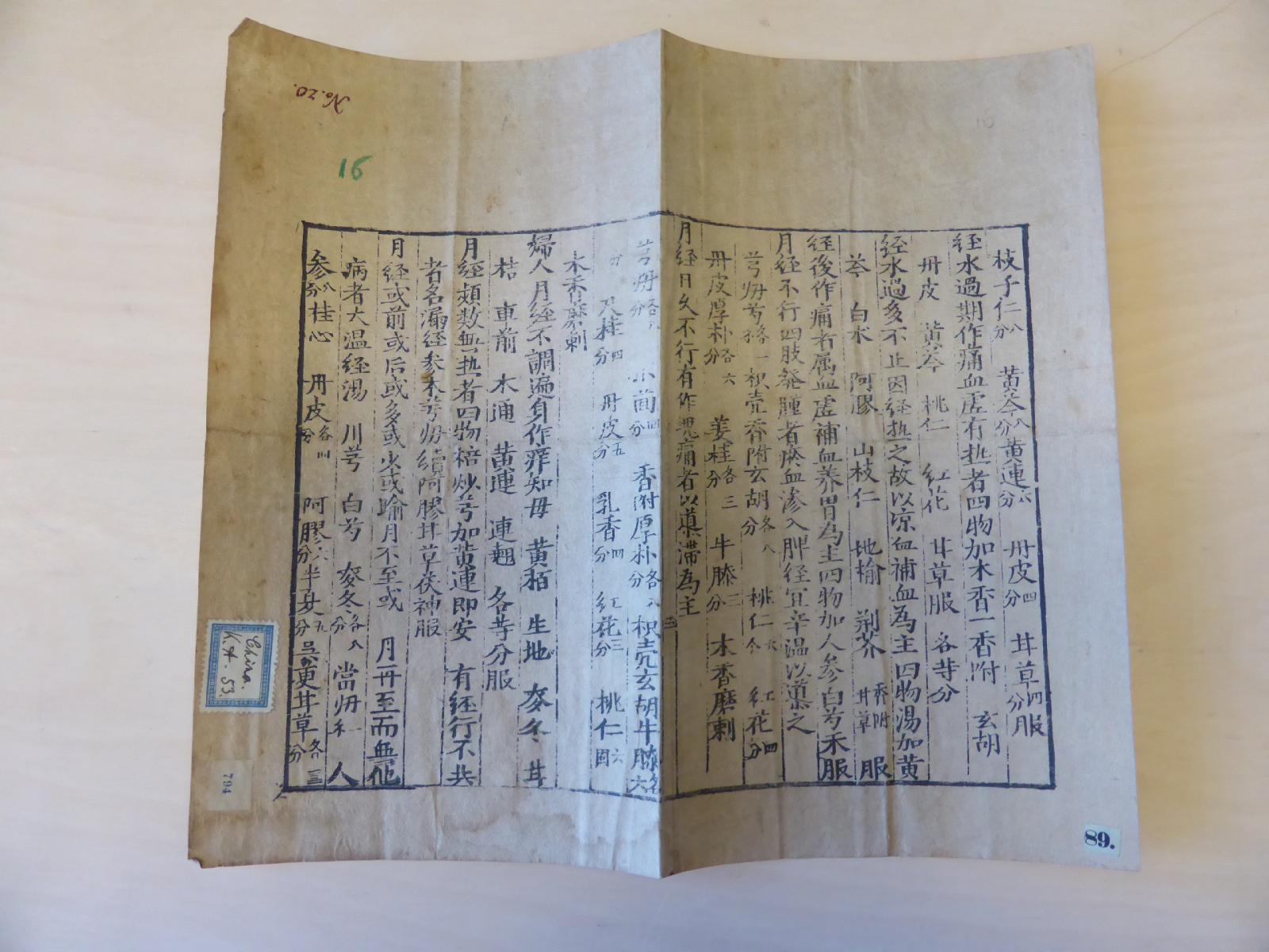 Größen. Einige aufgekleft. Diverse Stempel von Teeläden. Einzelnes Blatt: Doppelseite aus