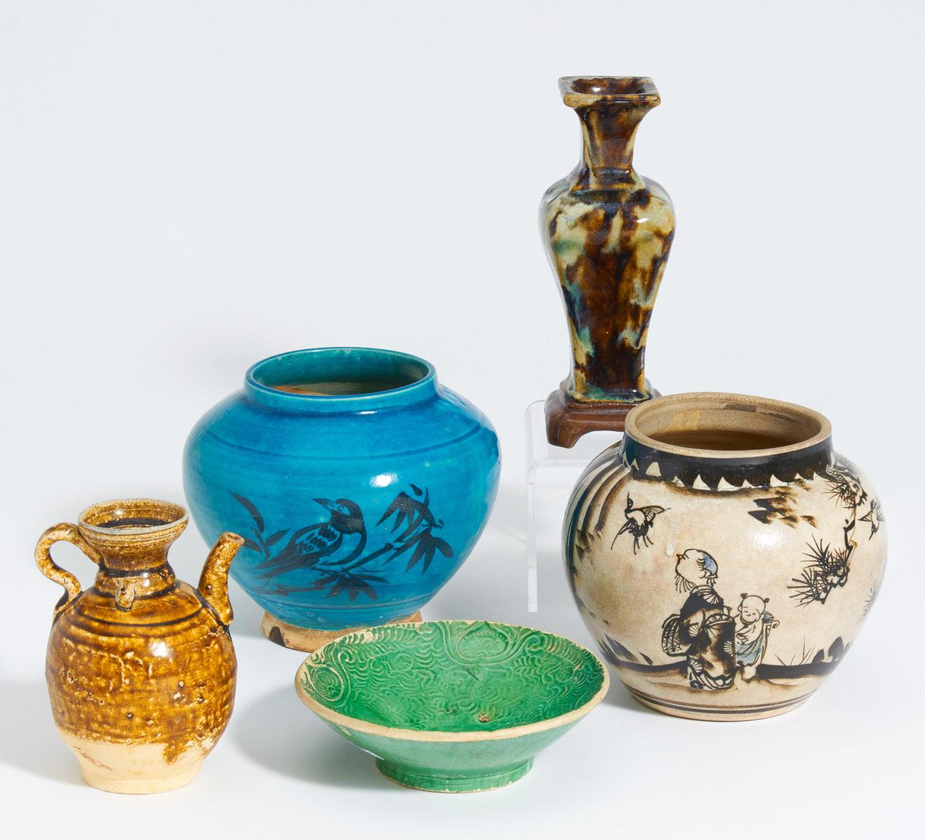 Technik: Steinzeug mit schwarzer, cremefarbener, brauner, türkisfarbener und grüner Glasur.