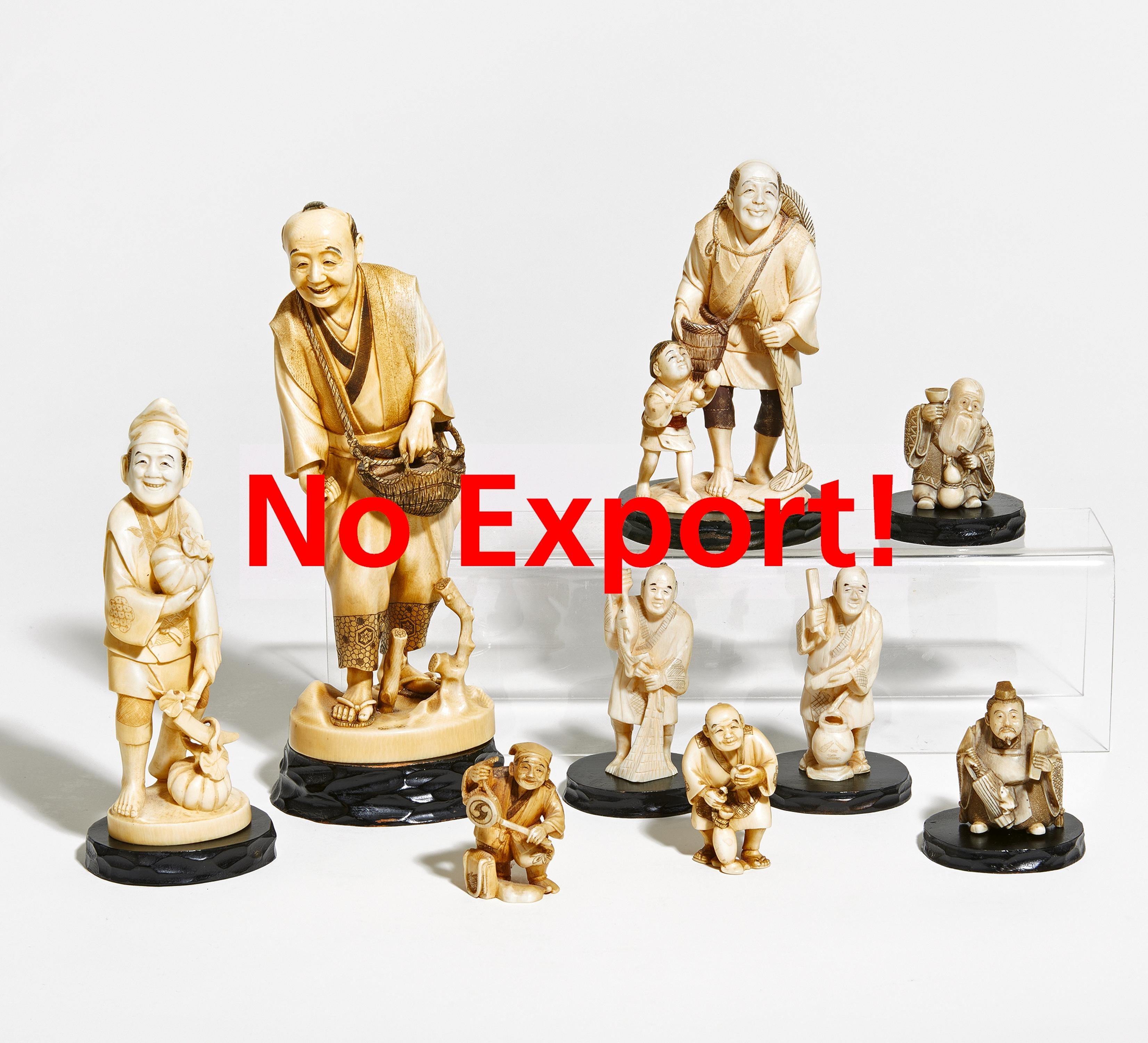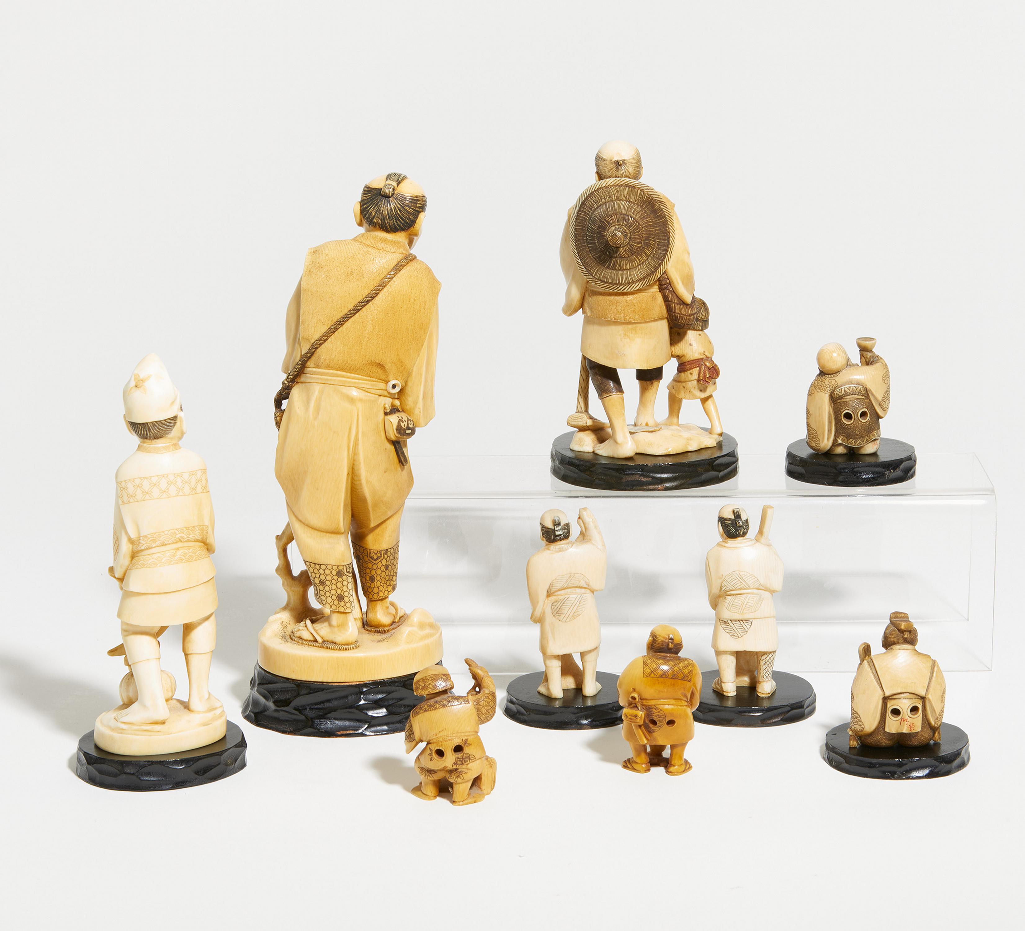 FÜNF OKIMONO UND VIER NETSUKE.