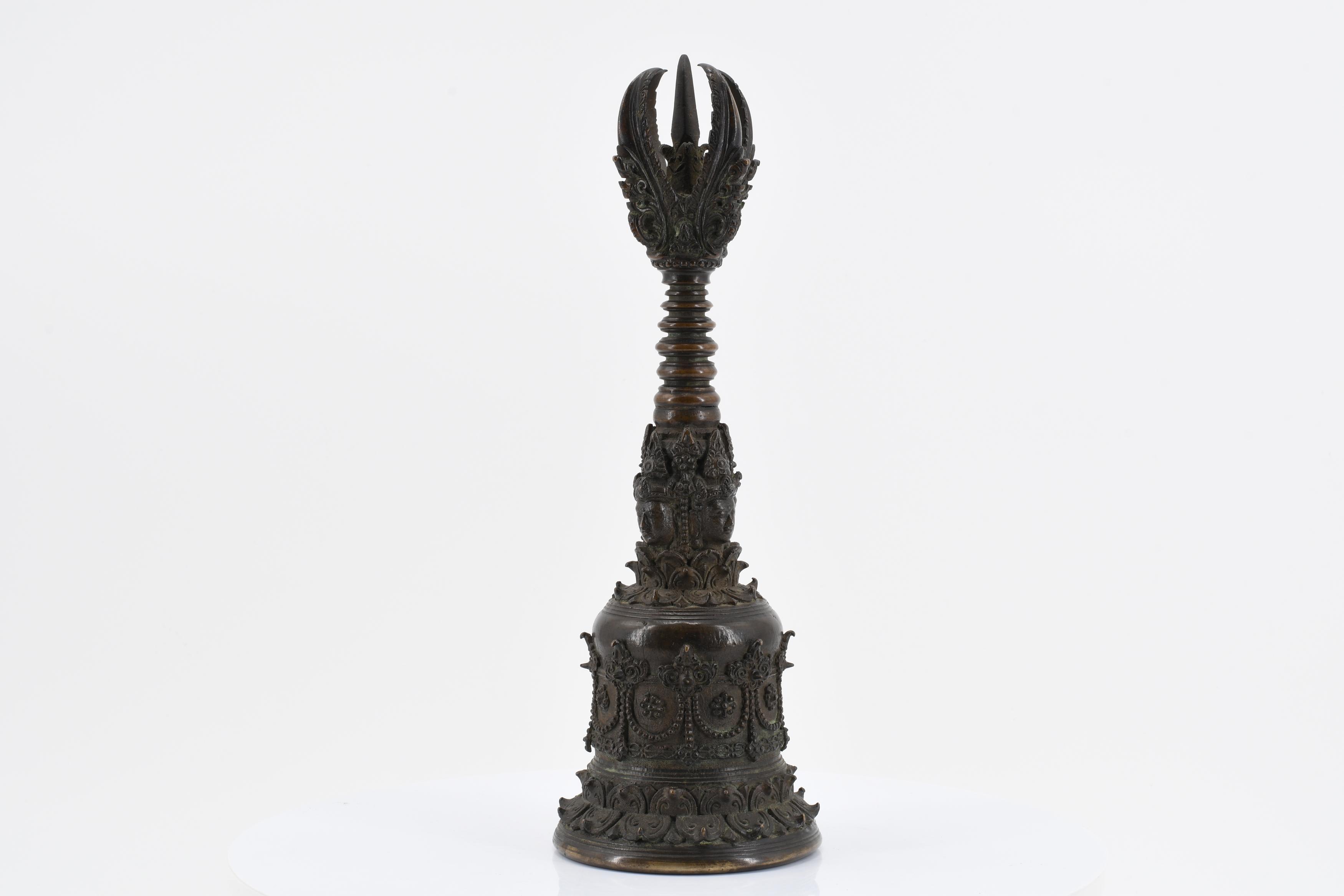 Beschreibung: Rituelle Glocke mit Vajra-Griff und Reliefdekor.