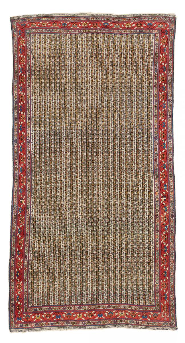 19.Jh. 245 x 128cm. Zustand C. (Sehr feine Knüpfung, beschädigte Kanten).