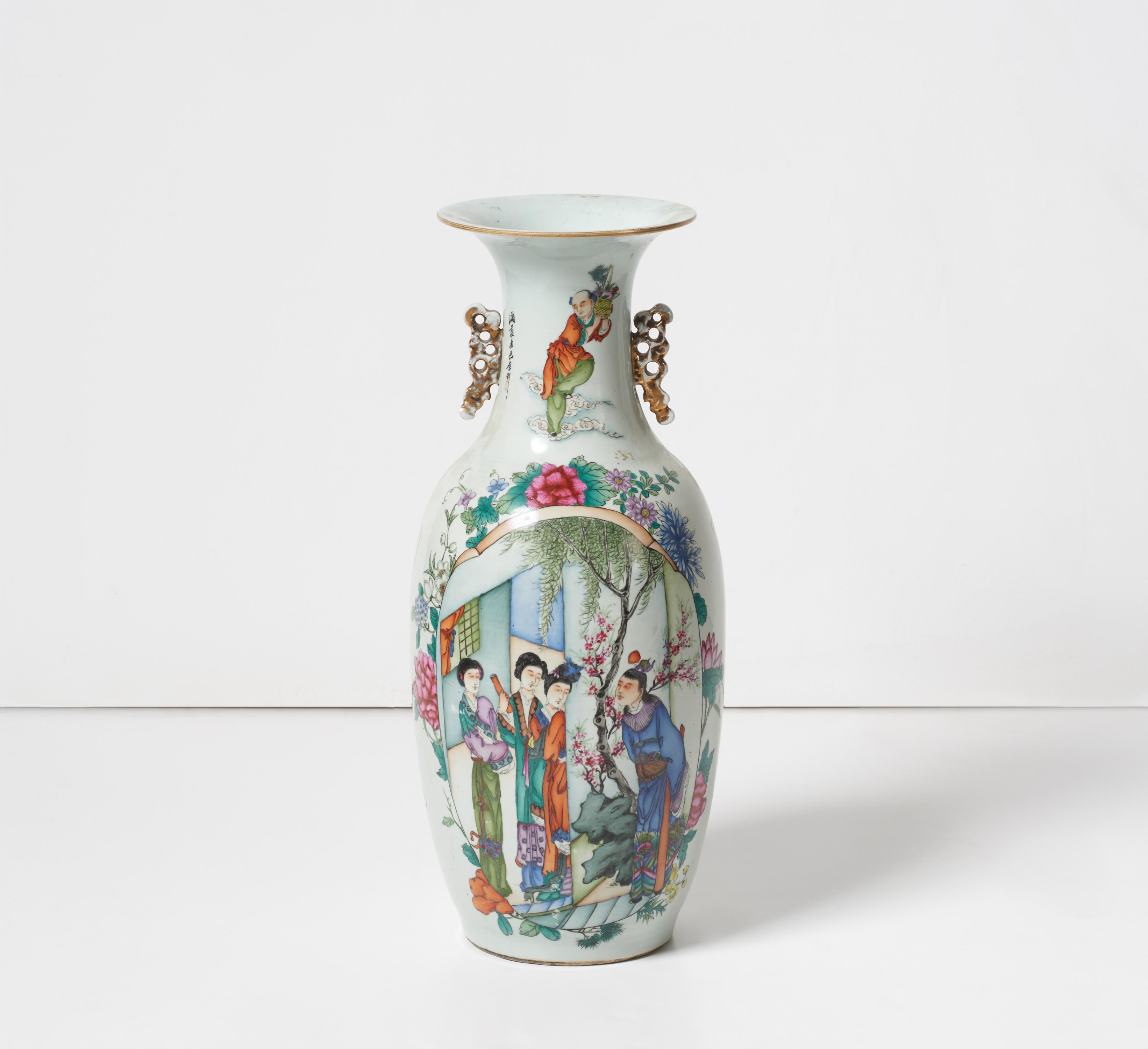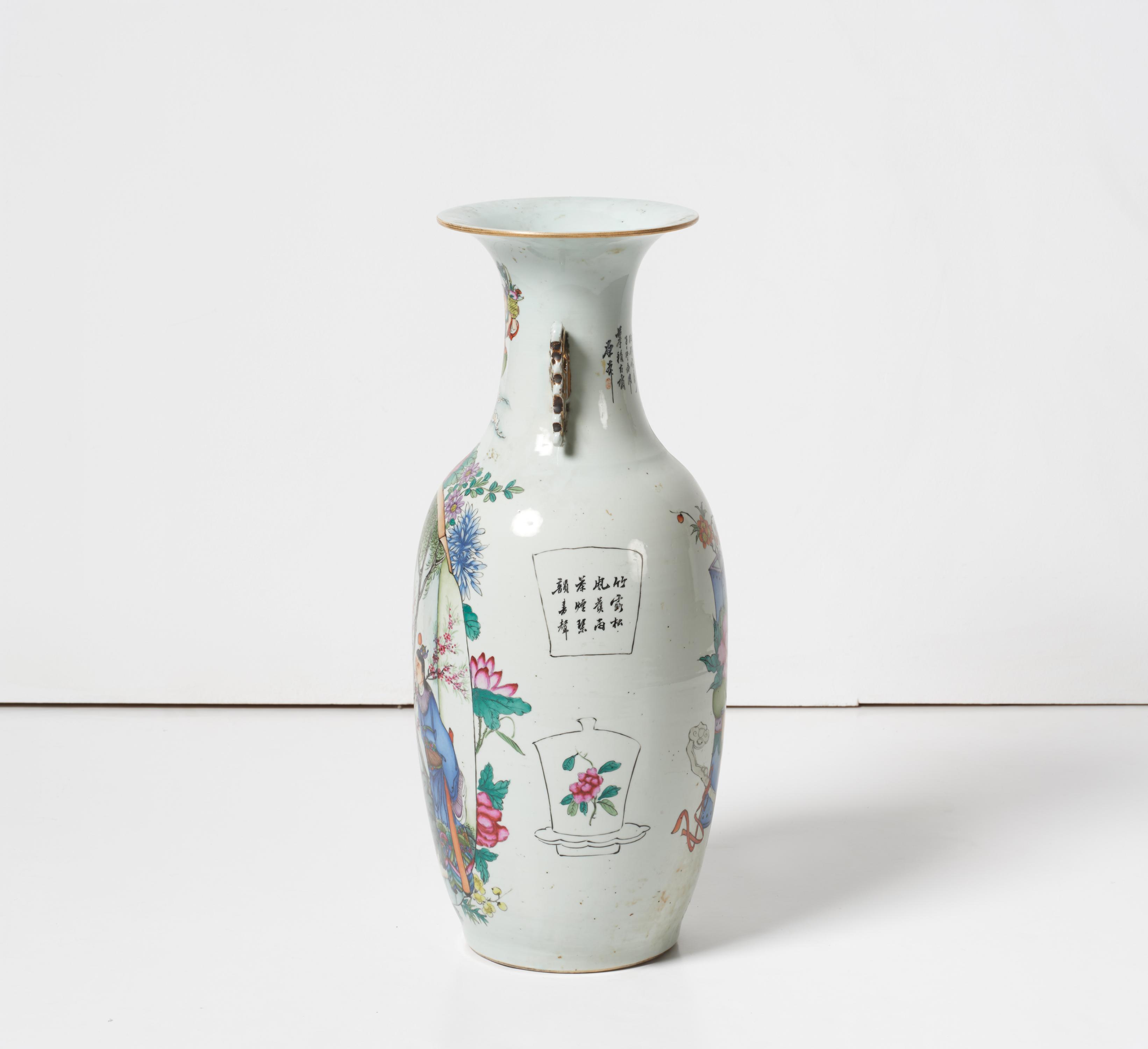 GROßE BALUSTERVASE MIT FIGÜRLICHEN SZENEN FAMILLE ROSE