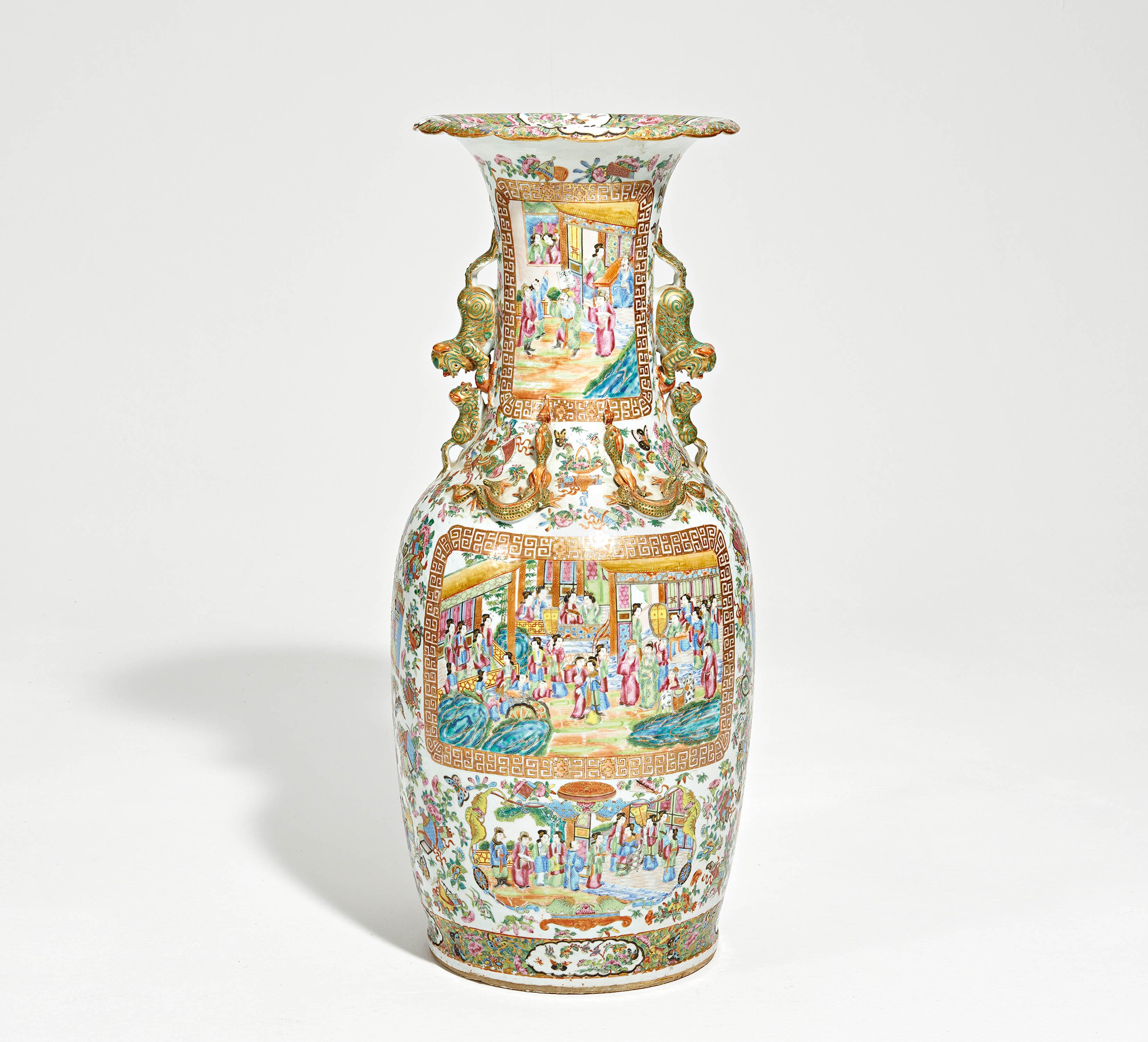 GROßE FAMILLE ROSE VASE IM KANTON-STIL.