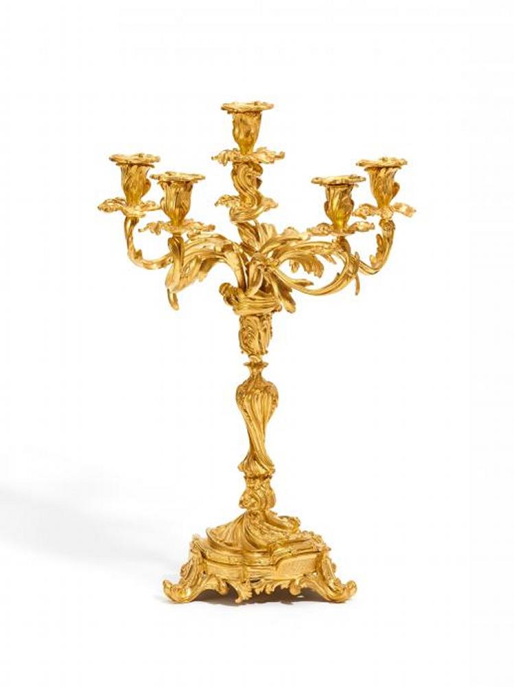 Bronze vergoldet. Fünfflammig. Höhe 59 cm. Zustand A/B.