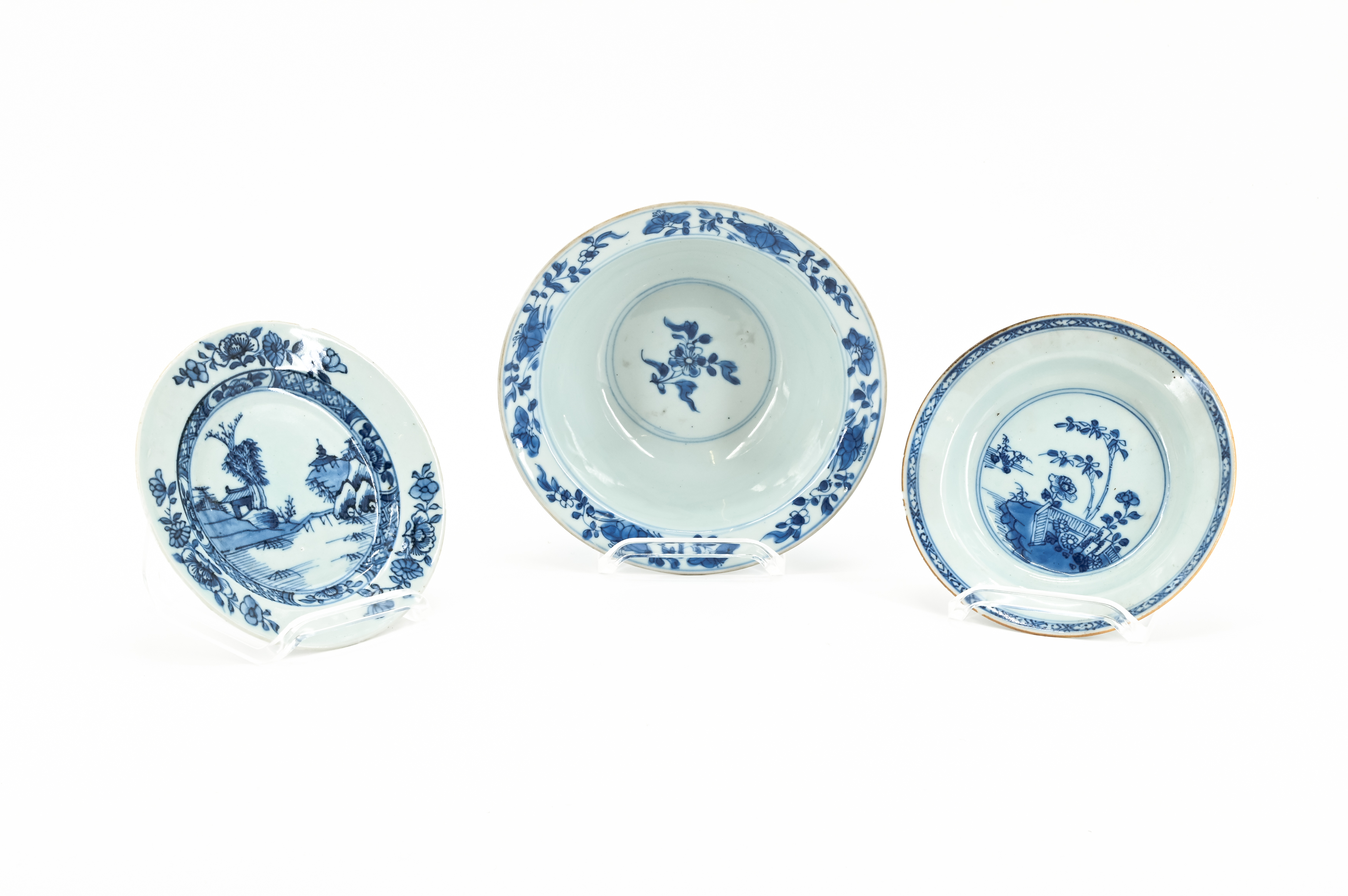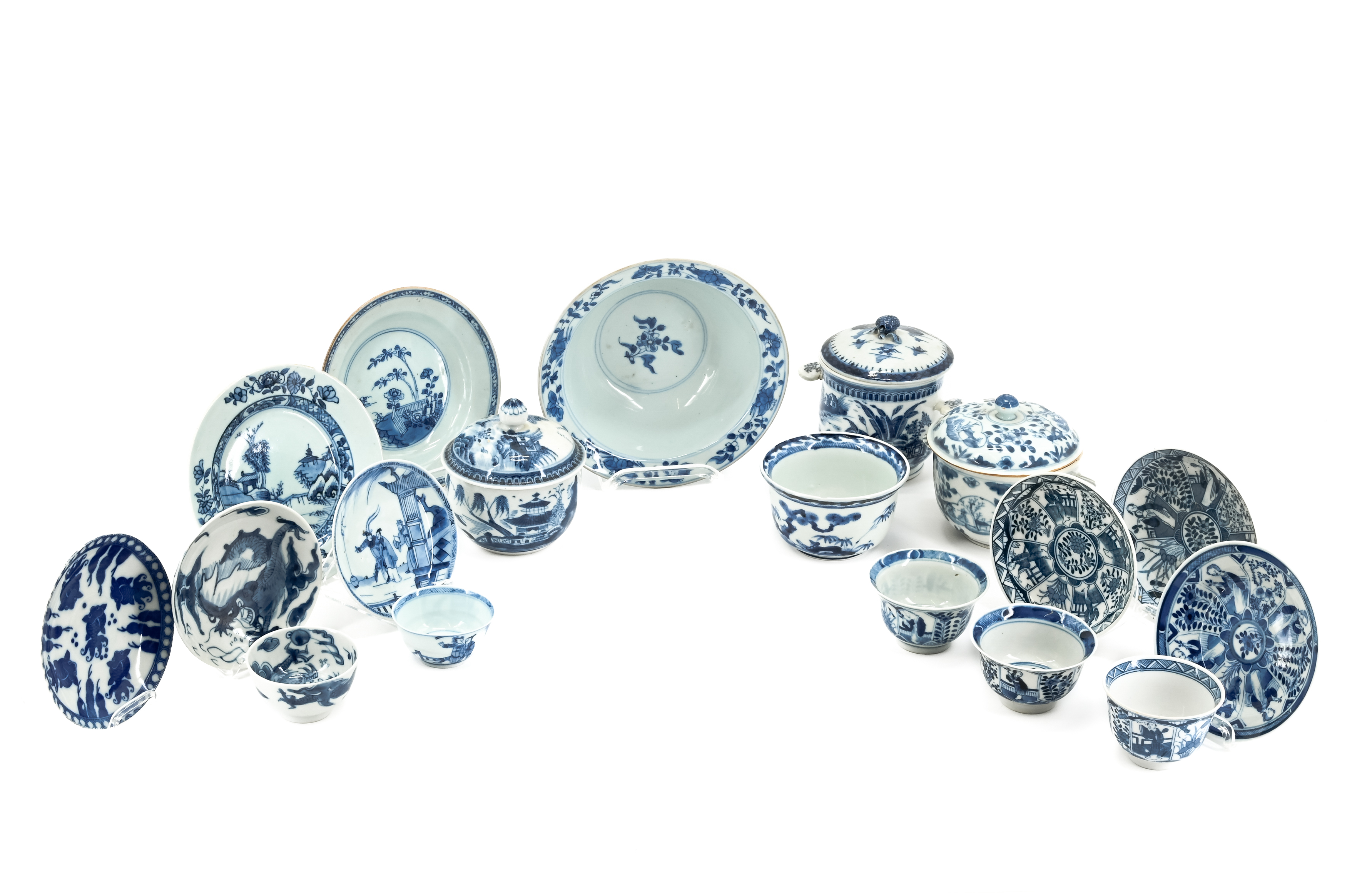 GROßE GRUPPE VON 53 TEILEN MIT BLAU-WEIßEM DEKOR.