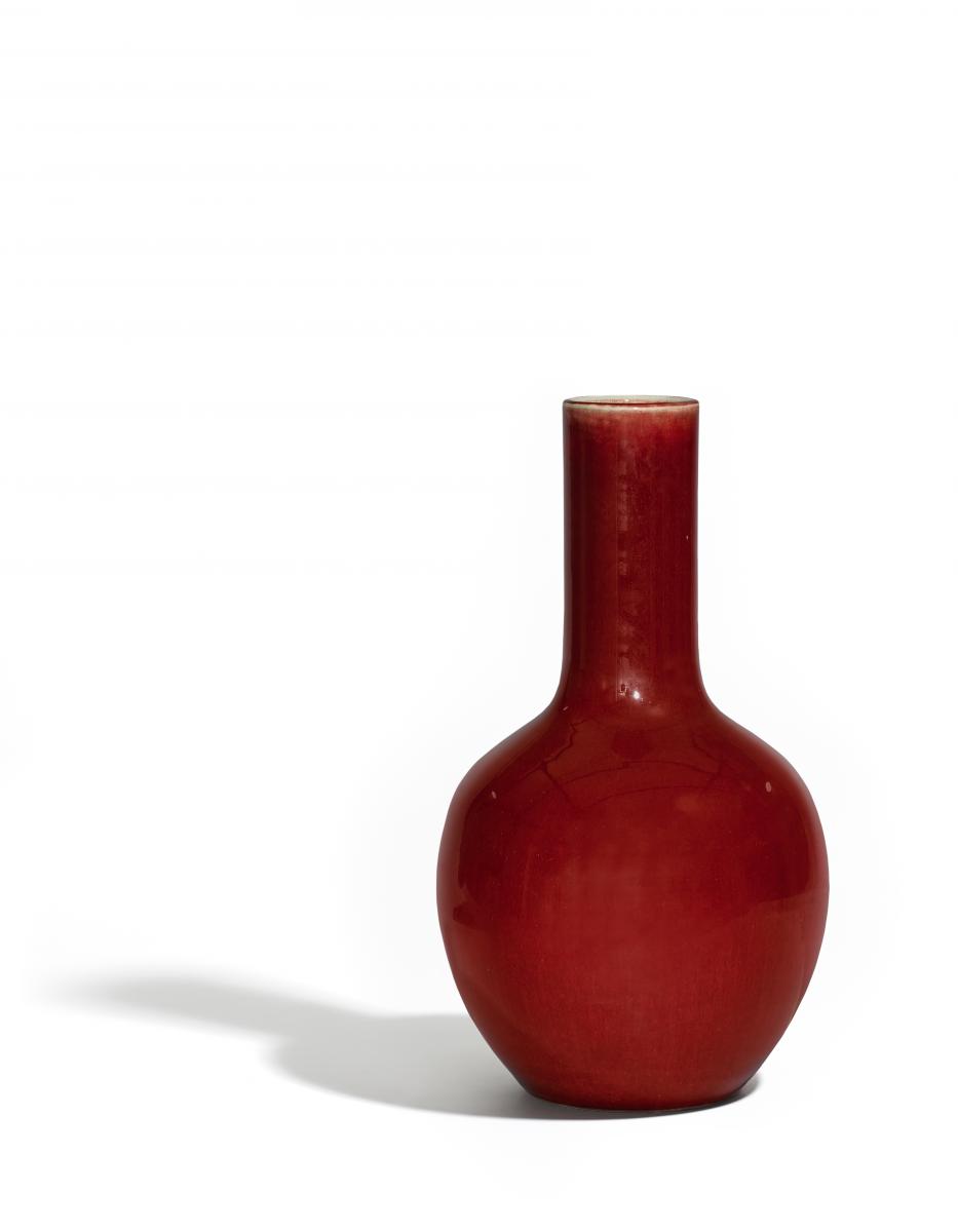 Beschreibung: Die gleichmäßig kräftig rot leuchtende Glasur ist nur am Mündungsrand etwas dünner und