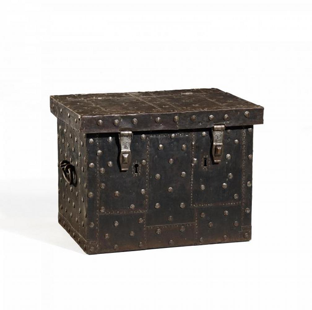 Holzkorpus mit Eisenplatten verkleidet. 64,5x87x61 cm. Zustand B.