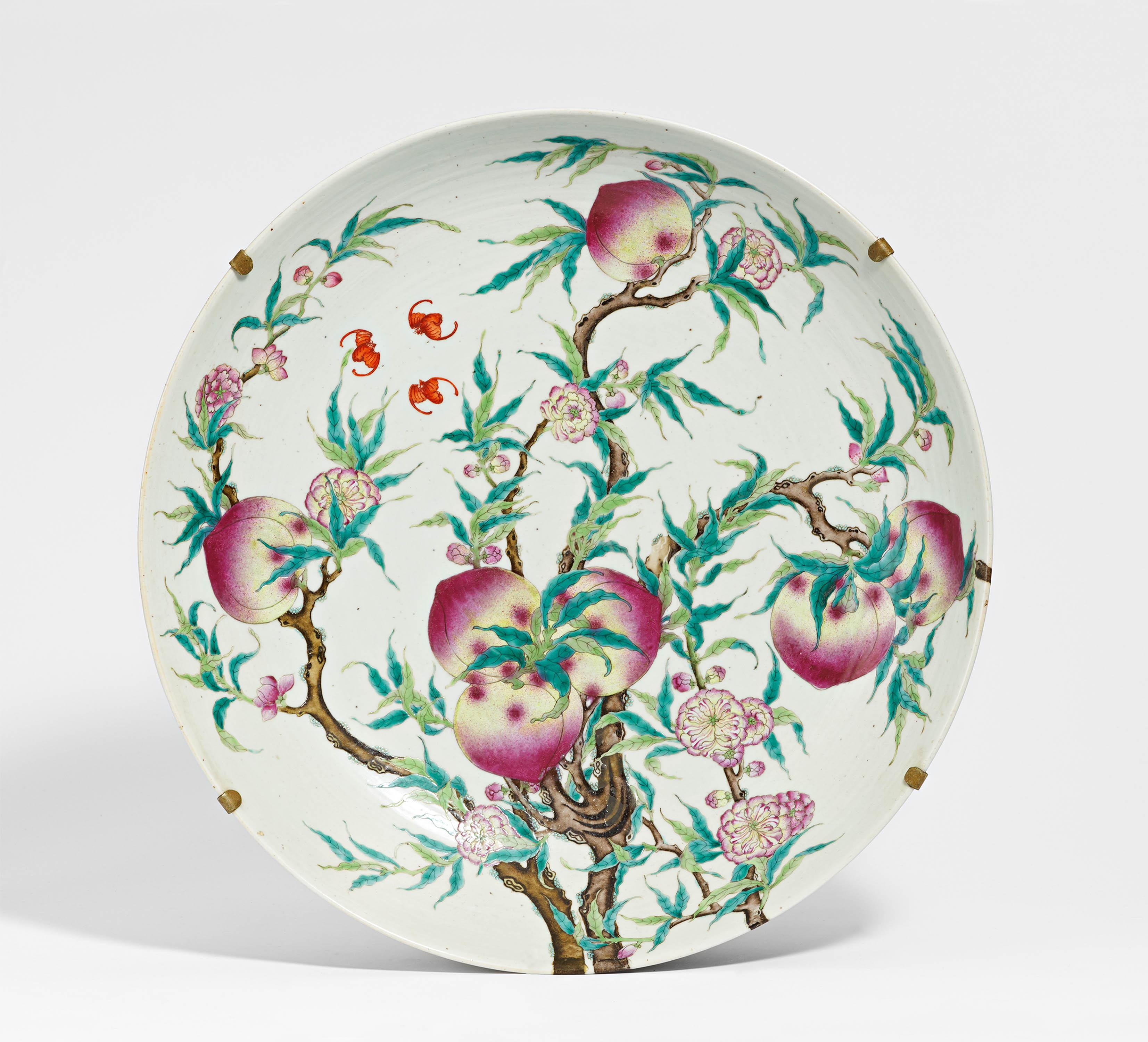 GROßE SCHALE MIT FAMILLE ROSE "NINE-PEACHES"-DEKOR.