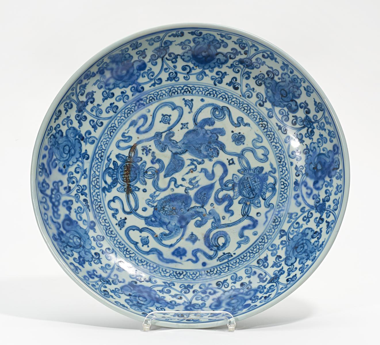 Technik: Porzellan, bemalt mit Unterglasurblau.