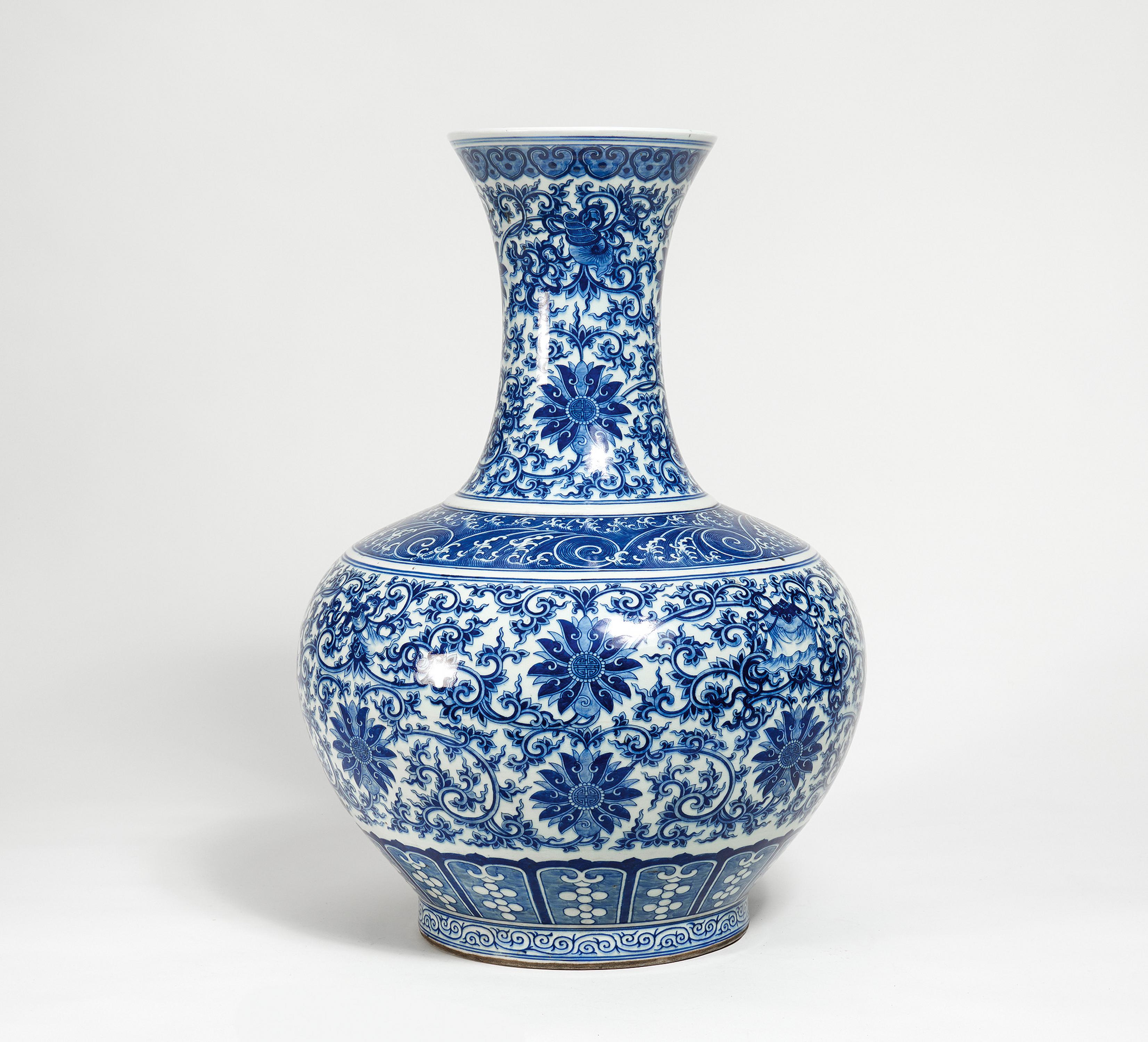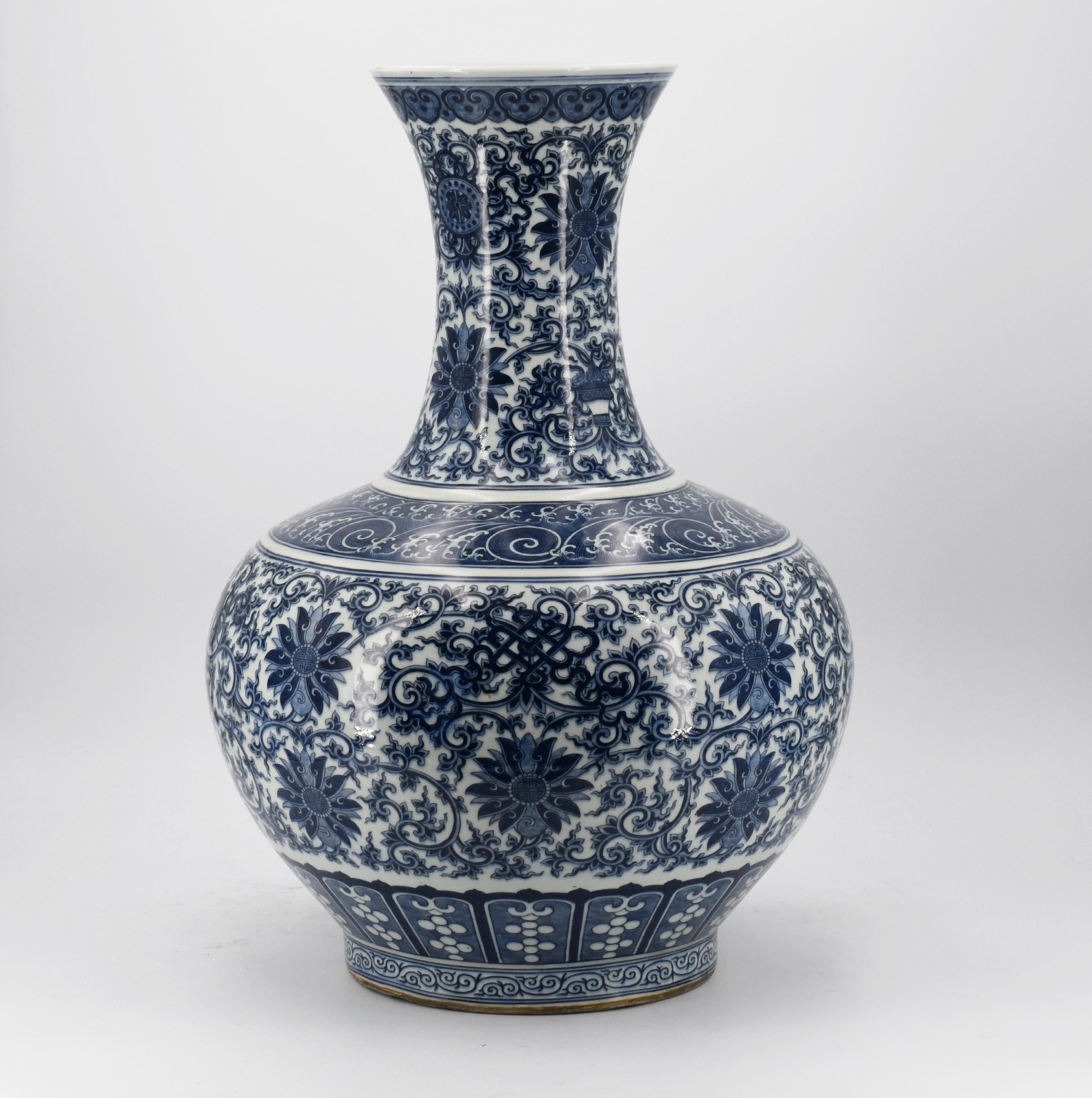 GROßE TIANGQIUPING-VASE MIT DEN ACHT BUDDHISTISCHEN KOSTBARKEITEN.