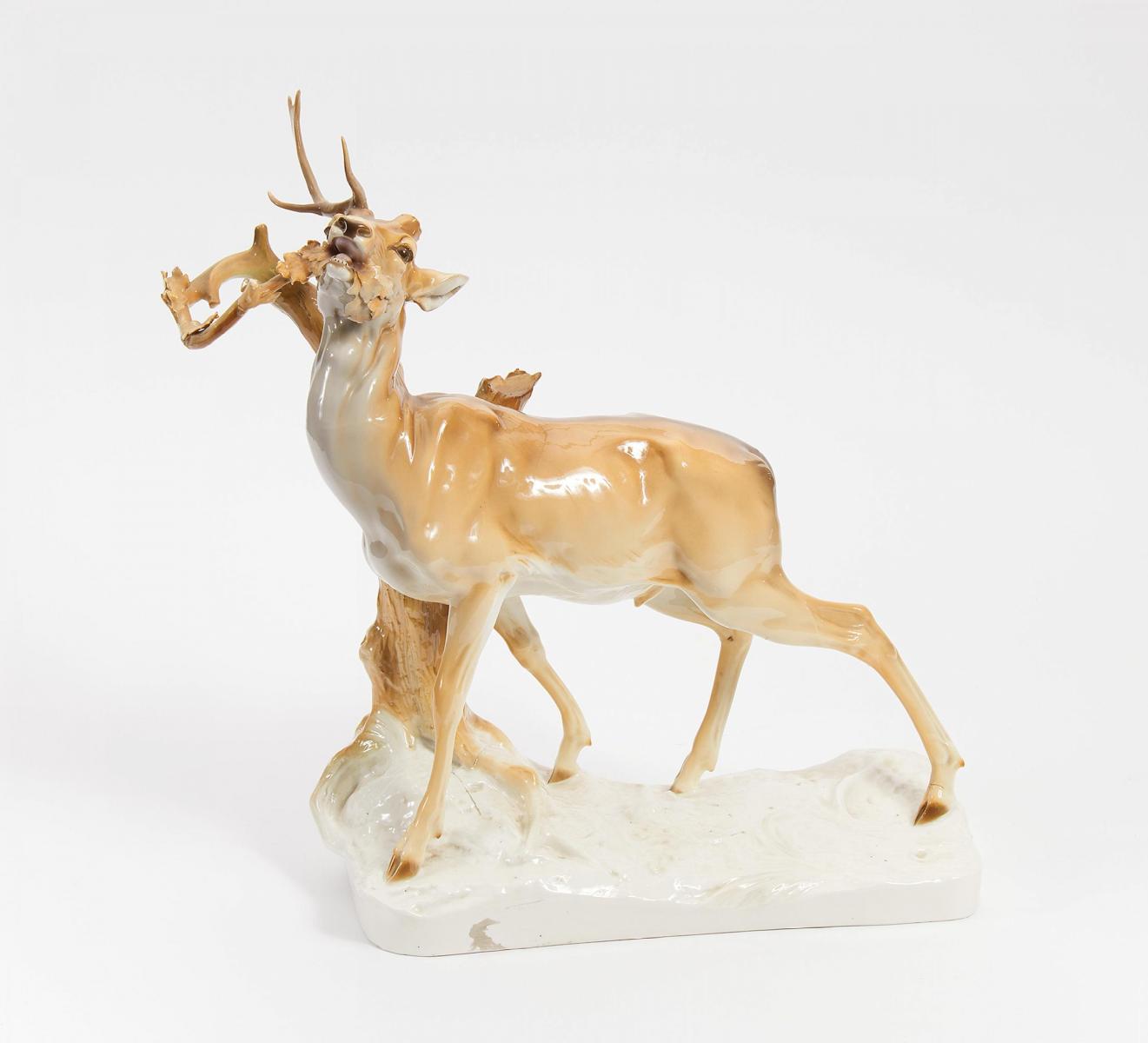 GROßER HIRSCH AUF RECHTECKIGEM SOCKEL.