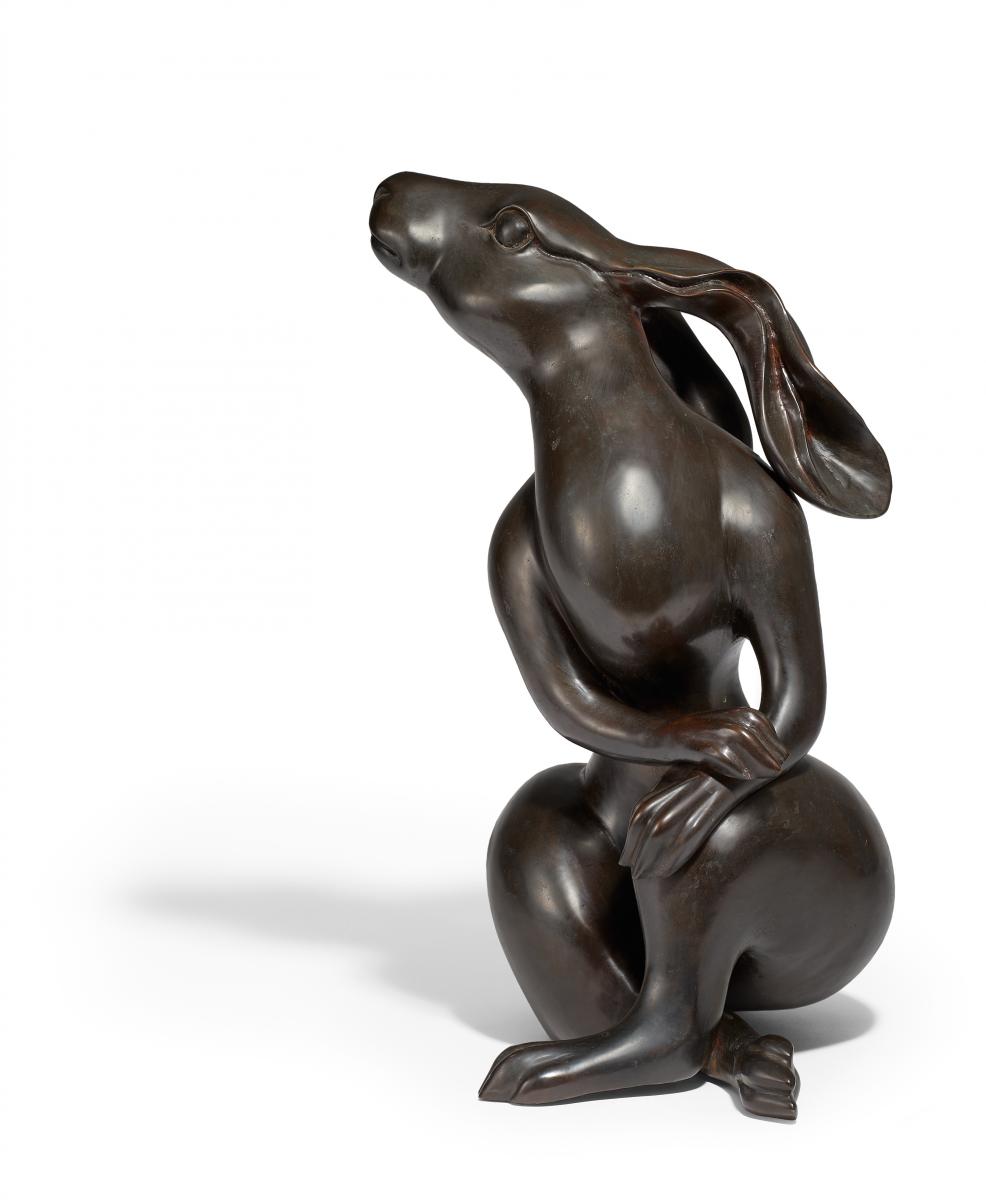 Technik: Bronze mit dunkelbrauner, silbrig schimmernder Patina.
