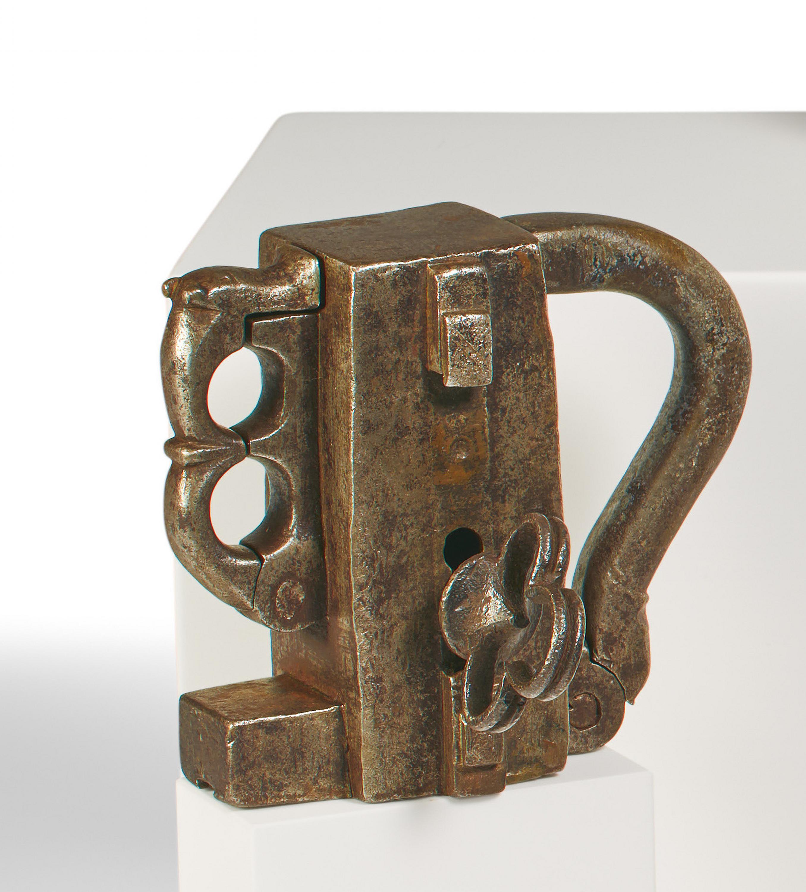 Zwei Schlüssel vorhanden, einer fest steckend und das Schloss blockierend.