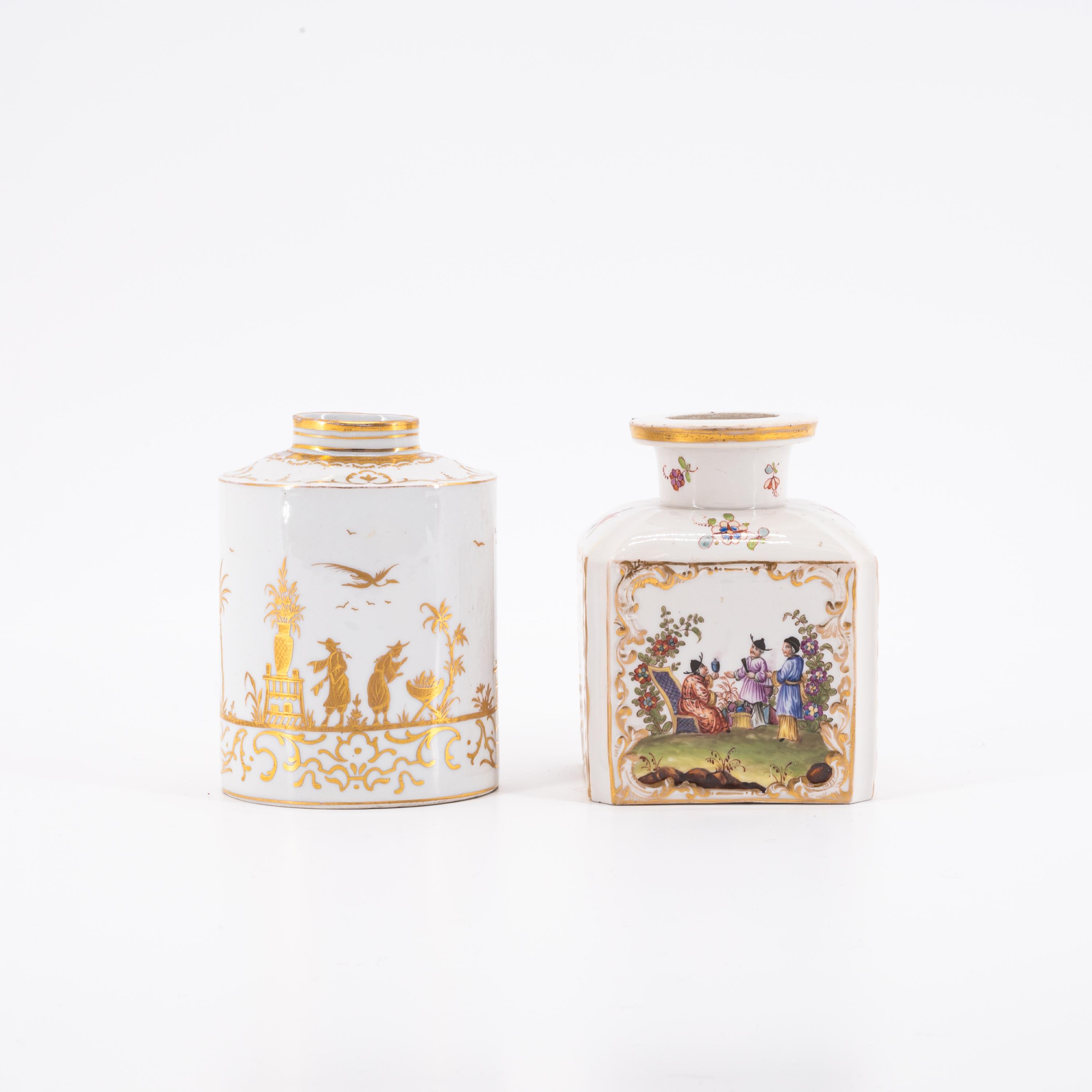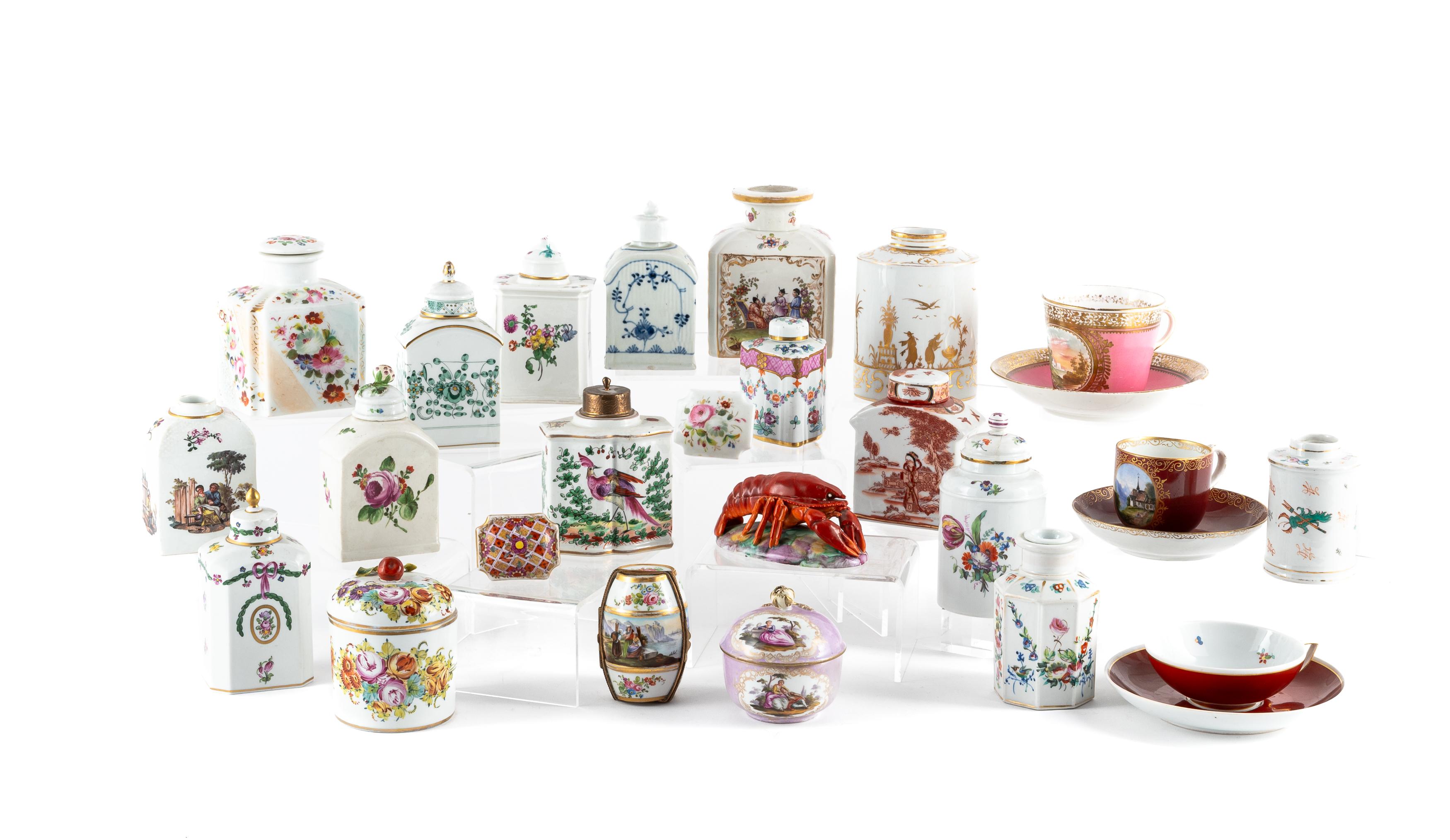 Maße: Höhe der Dosen 6-14cm, ø der Untertassen 14-16cm.