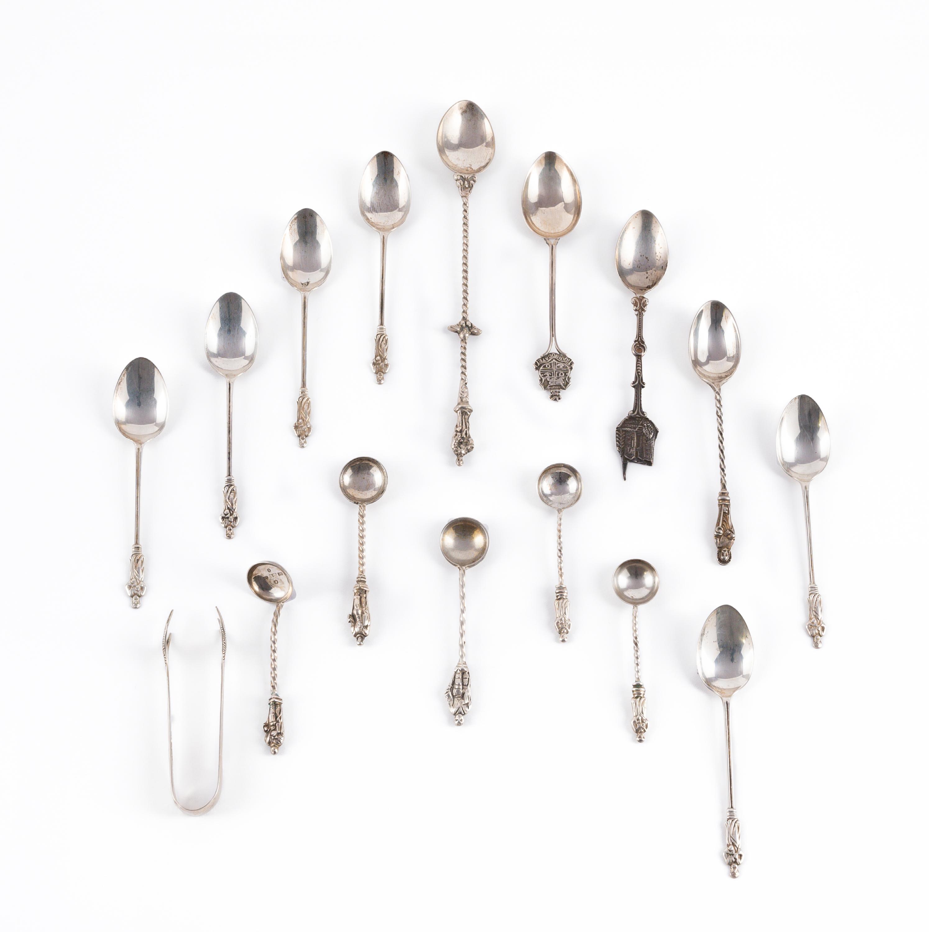 GRUPPE VON 15 LÖFFELN & 1 ZUCKERZANGE.