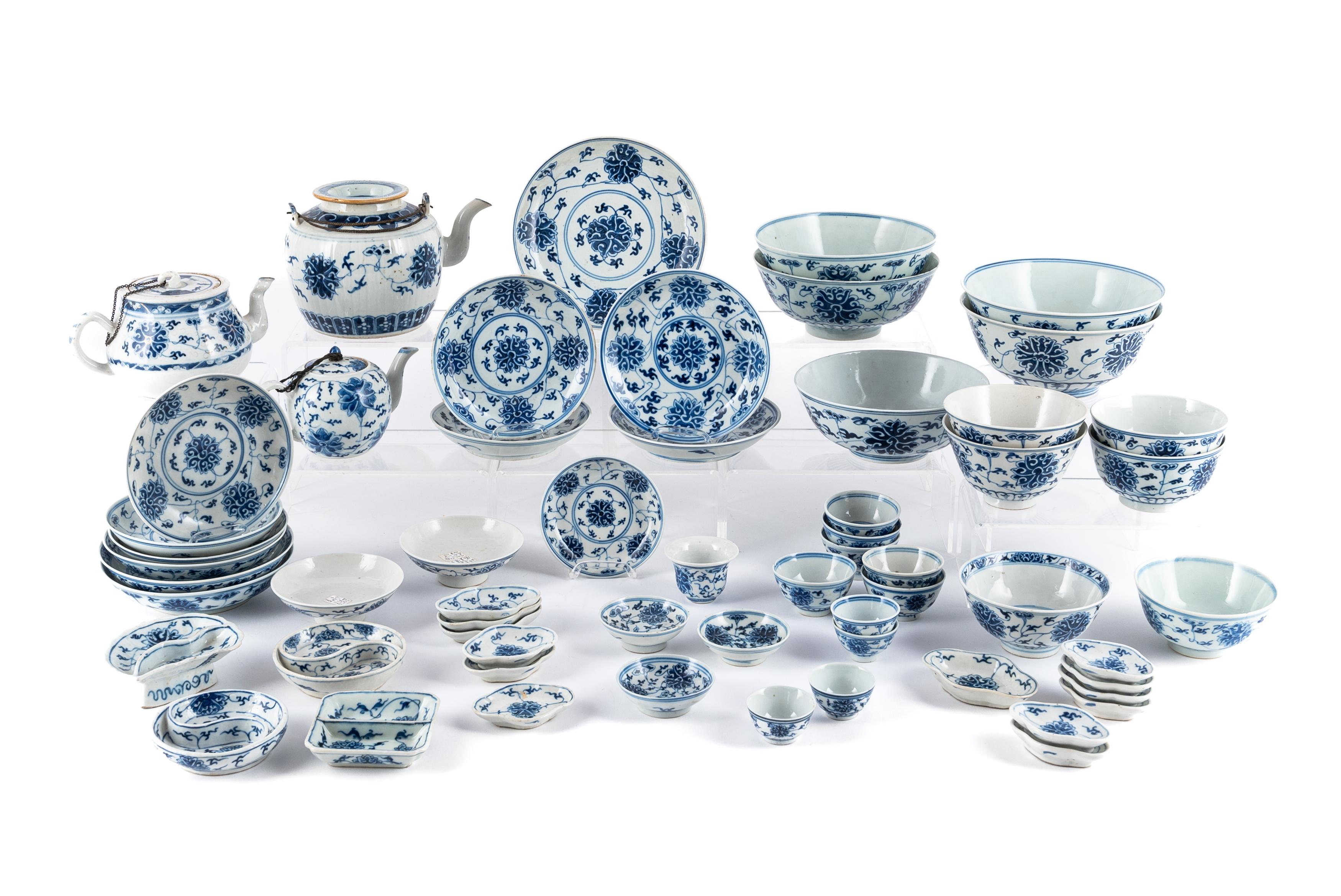 GRUPPE VON 60 TEILEN MIT BLAU-WEISSEM DEKOR.