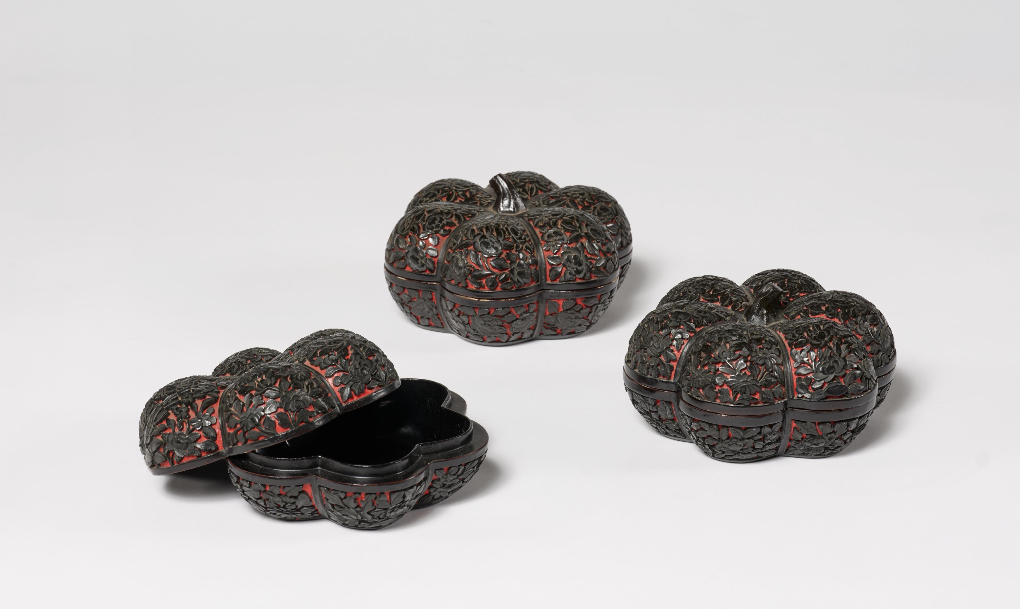 GRUPPE VON EINER VASE UND DREI DOSEN IN KÜRBISFORM